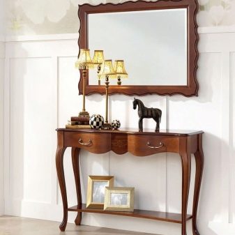 Avant de choisir une console, vous devez bien réfléchir à son utilité dans le couloir. Par exemple, si la table sera utilisée comme coiffeuse, alors il vaut mieux rester sur des modèles allongés avec un miroir. Si vous le souhaitez, ils peuvent être équipés de tout ce dont vous avez besoin pour ranger toutes sortes de petites choses.
