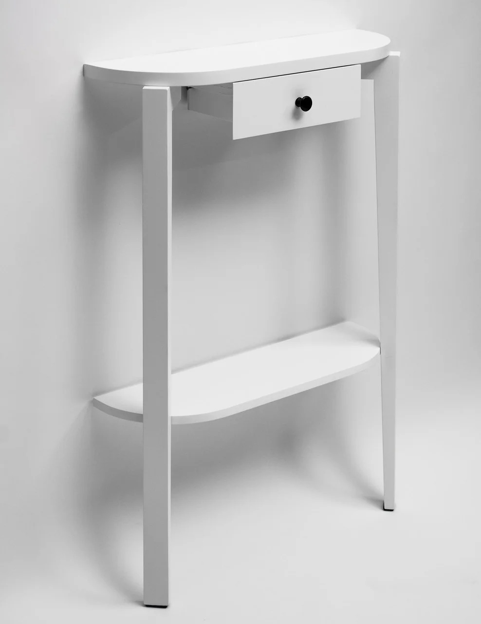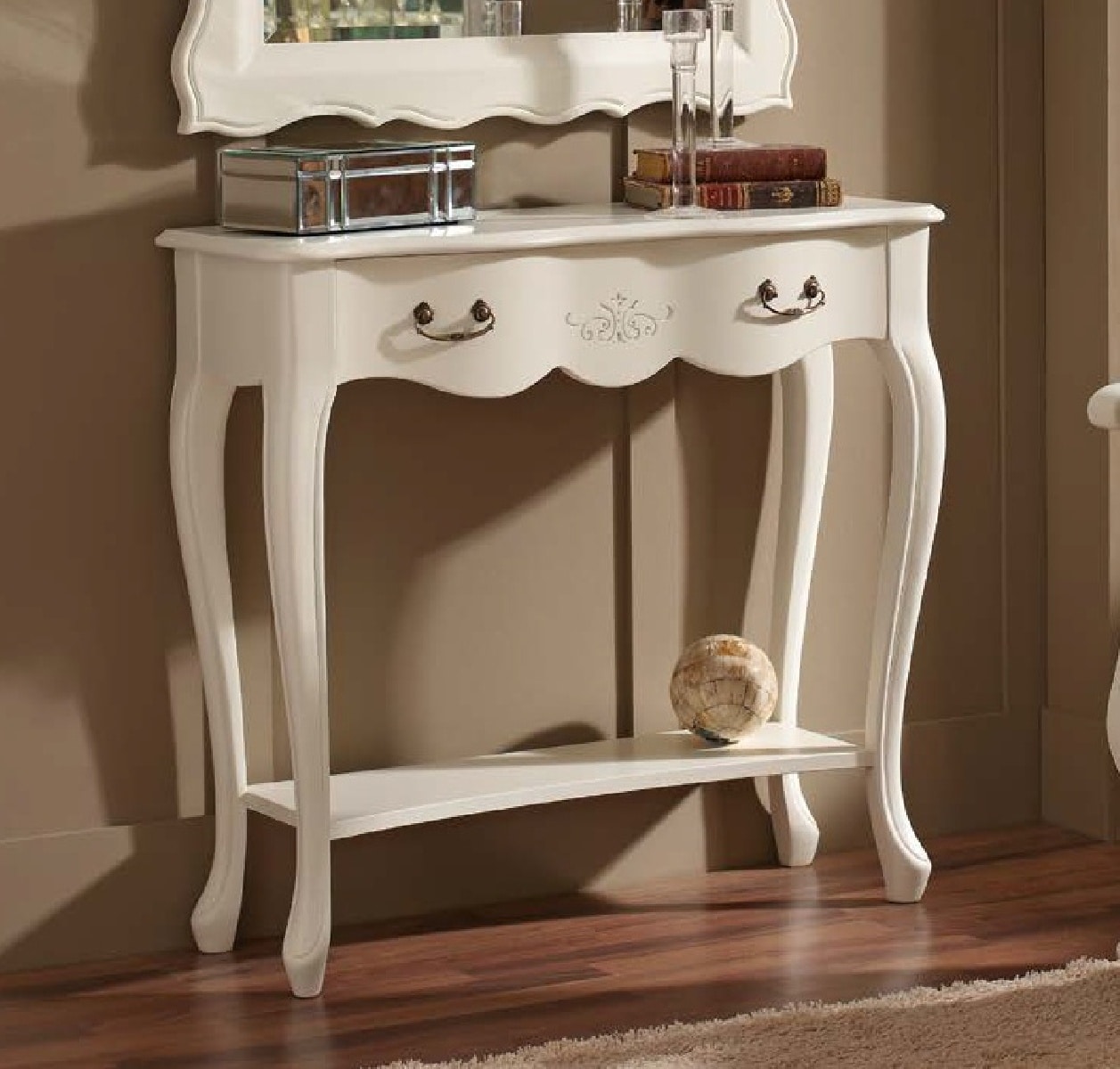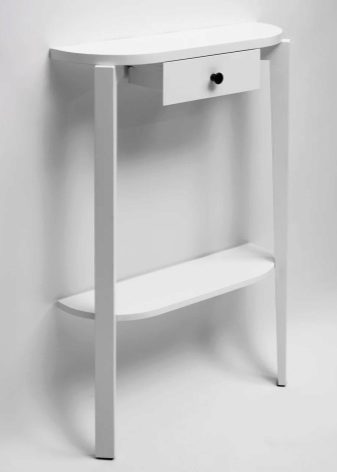 Une solution universelle pour n'importe quel couloir est une table blanche. Parmi les couleurs pastel, un tel modèle deviendra la pièce maîtresse. Les variantes avec une décoration de placage dans des couleurs naturelles ou vives sont pertinentes.