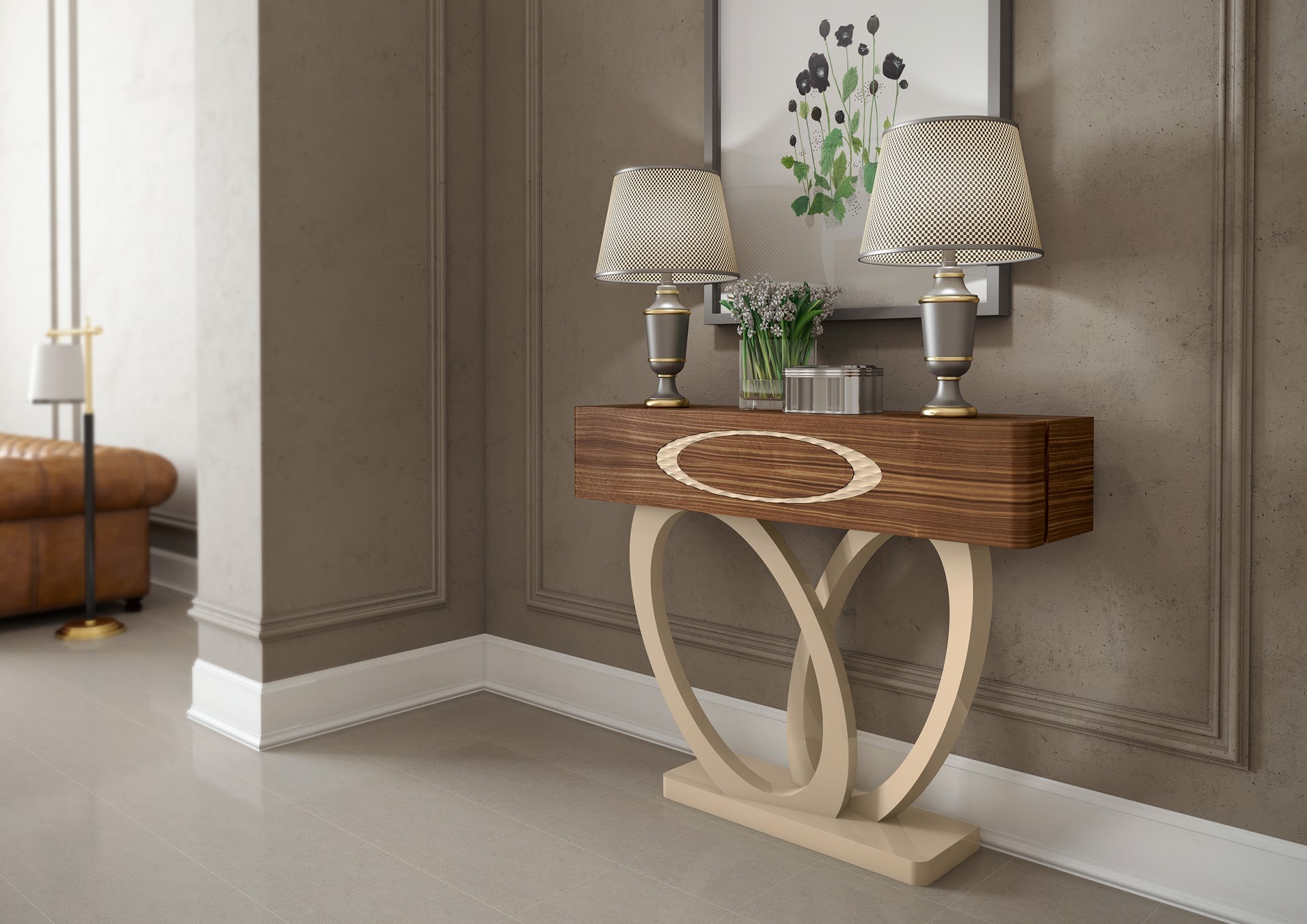 L'éclectisme, le néoclassicisme et le shabby chic peuvent également être agrémentés de consoles de style classique. Cependant, il faut choisir une finition originale, des garnitures vives et des couleurs expressives. Lampes, figurines et petits accessoires peuvent être utilisés comme compléments.