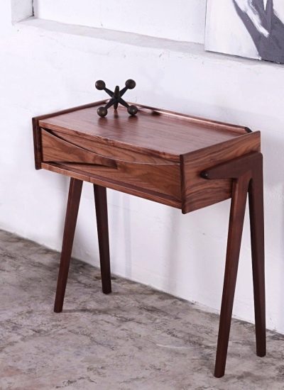 - La table d'appoint ressemble à une table sur deux pieds. Bien sûr, ils ne suffisent pas pour des positions stables et la console doit être fixée au mur.
