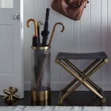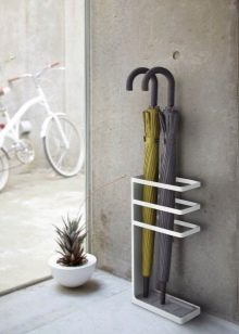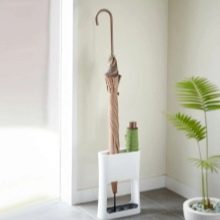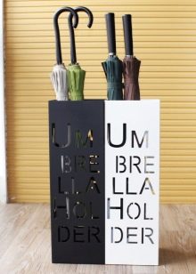 - Une attention particulière doit être accordée à la conception du parapluie. Le produit doit non seulement plaire à l'acheteur, mais aussi s'intégrer harmonieusement à l'intérieur du couloir. Il est important de choisir des options qui correspondent à la fois au style et à la palette de couleurs de l'environnement. Ce n'est que si cette condition simple est remplie qu'un intérieur harmonieux et attrayant peut être réalisé.