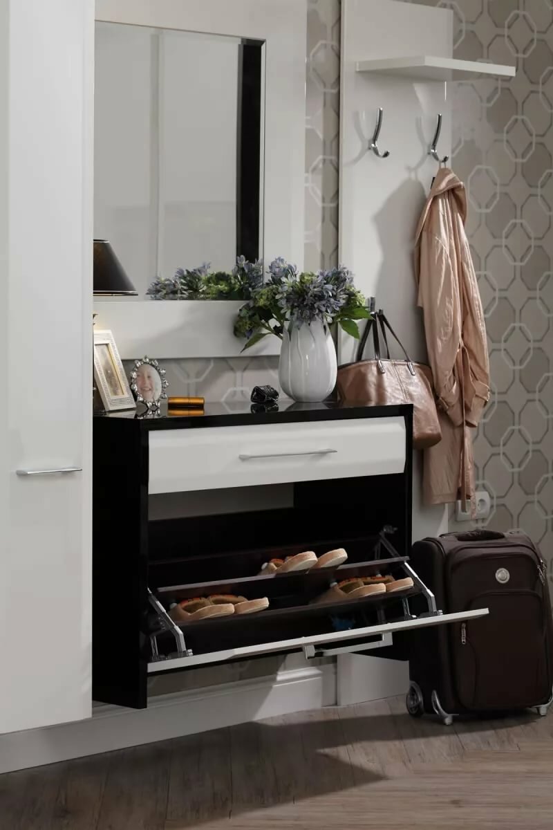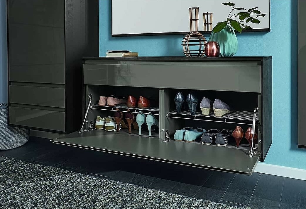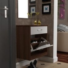 Les façades peuvent être fermées ou ouvertes. Les systèmes de stockage fermés aident à cacher le contenu des regards indiscrets. Les étagères ouvertes n'interfèrent pas avec la circulation de l'air et sont idéales pour ranger les chaussures décontractées. L'odeur désagréable des semelles s'érode dans le couloir et ne s'accumule pas dans un espace confiné. De plus, il est plus pratique de prendre des dossiers, des sacs et d'autres objets que vous souhaitez garder à portée de main sur des étagères ouvertes.