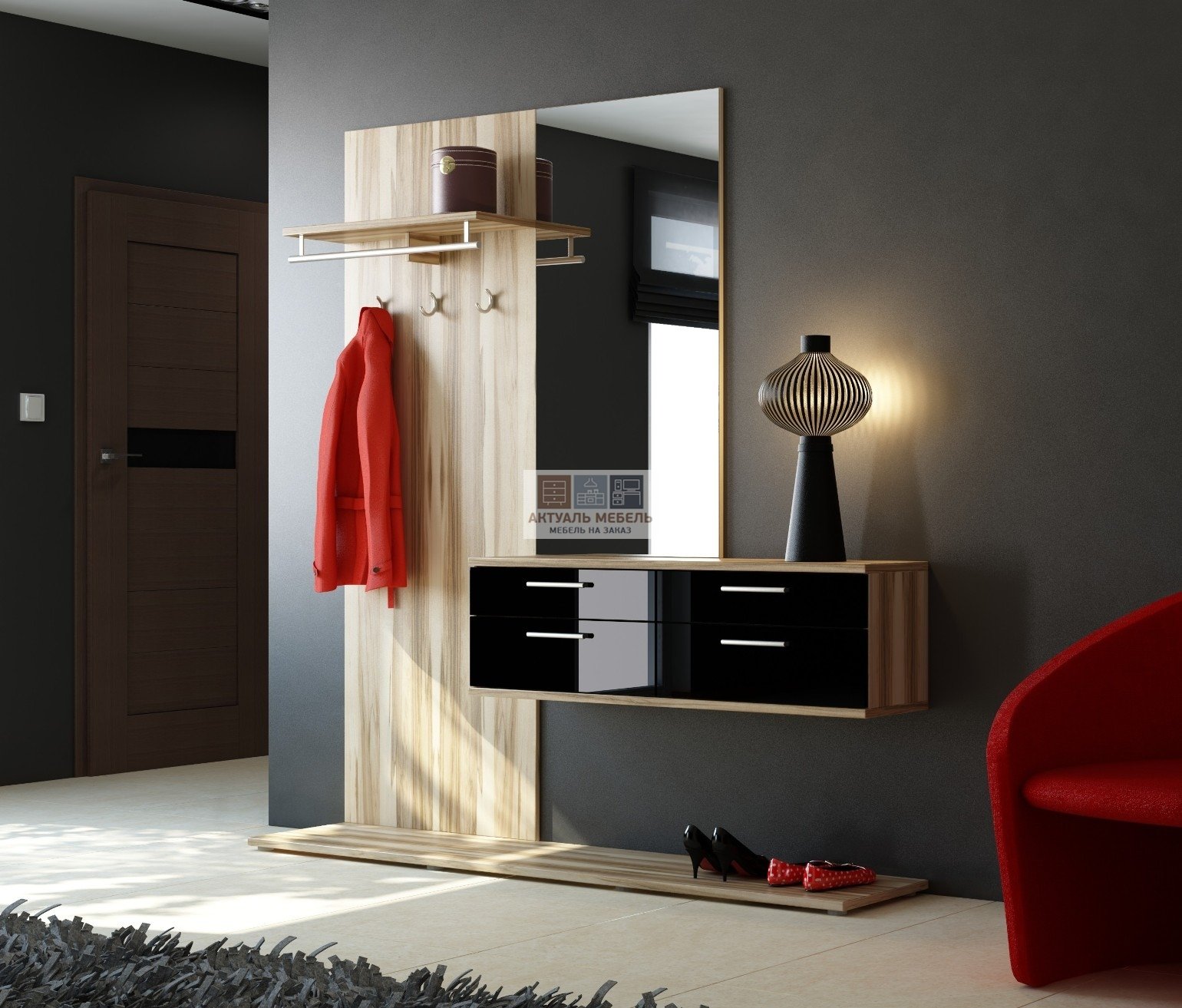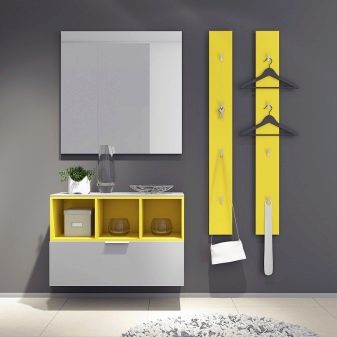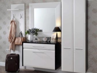 Si le couloir est meublé à partir de zéro, il est logique d'acheter immédiatement un ensemble de meubles prêts à l'emploi. L'avantage est que tout est conçu dans le même style, un design fonctionnel est supposé, cela revient souvent moins cher que d'acheter séparément. Un cintre avec un miroir ou une armoire, des étagères suspendues, une étagère à chaussures et un banc peuvent être inclus avec le meuble.