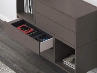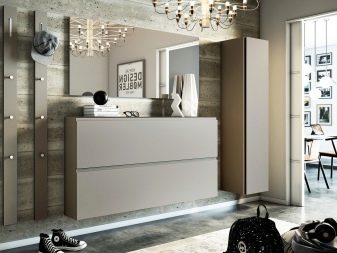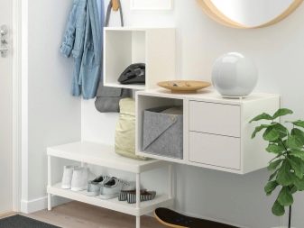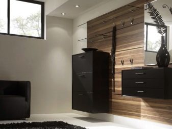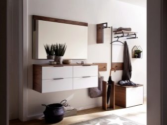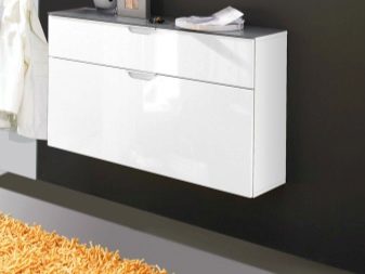 Par conséquent, lors du choix d'un meuble suspendu dans un petit couloir, il est nécessaire de prendre en compte non seulement les dimensions et le poids, mais également la qualité des sols auxquels il sera fixé. Pour la même raison, les caissons suspendus n'ont pas de modèles avec des sièges qui remplacent la banquette.