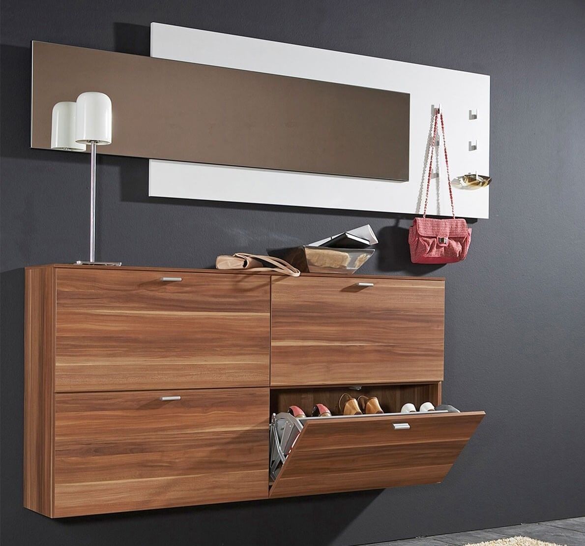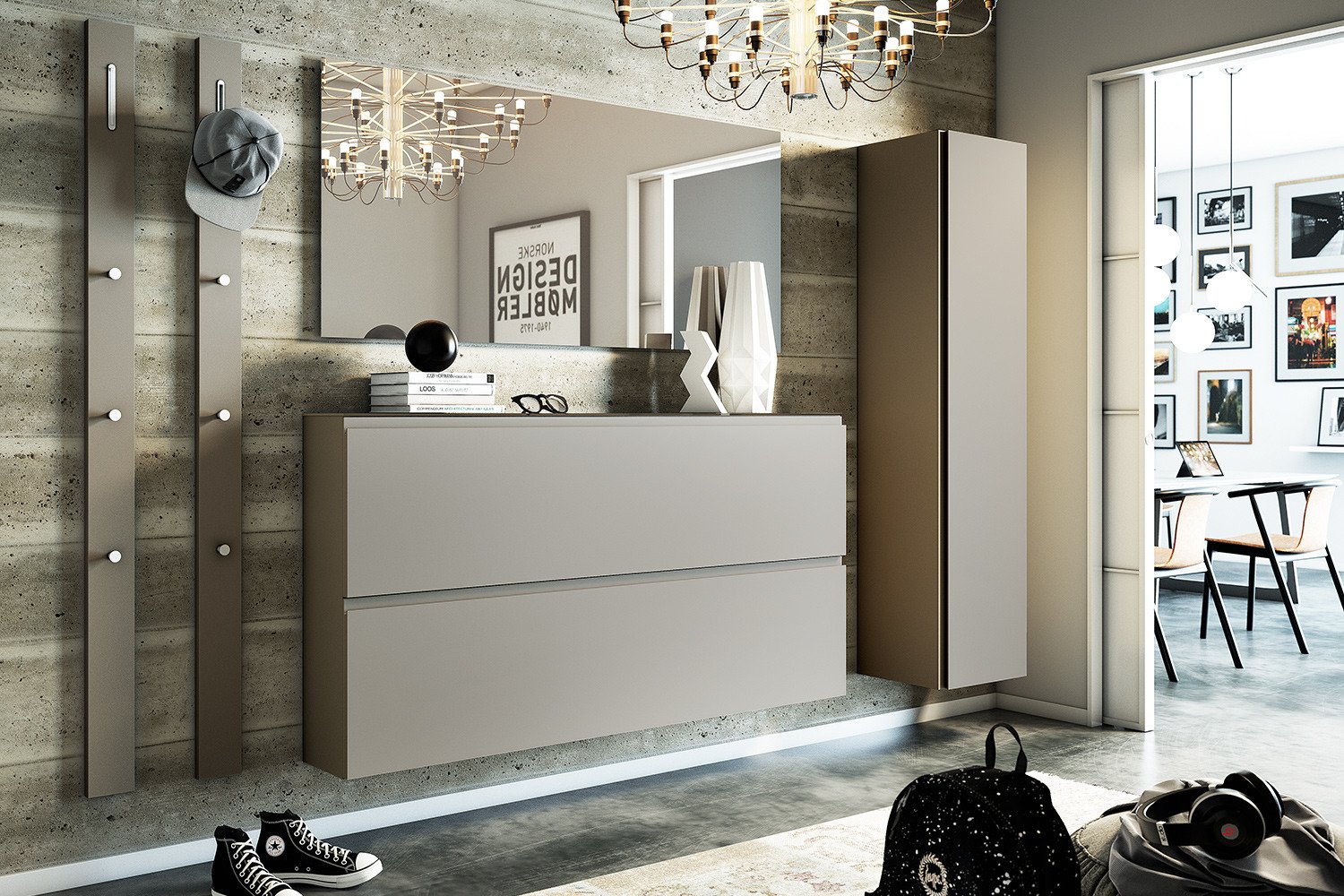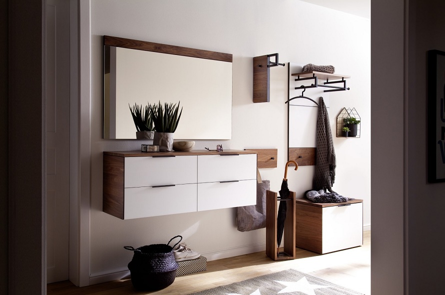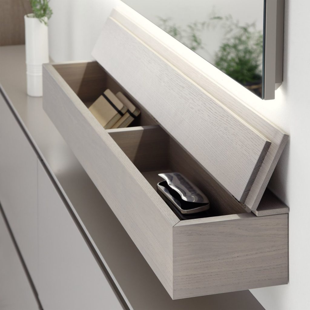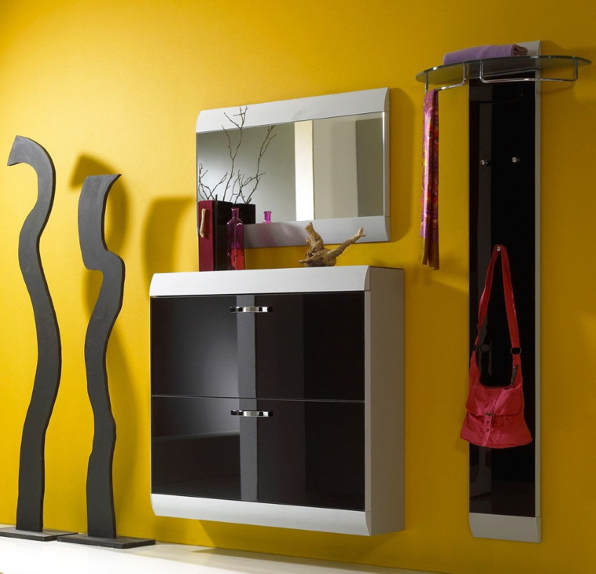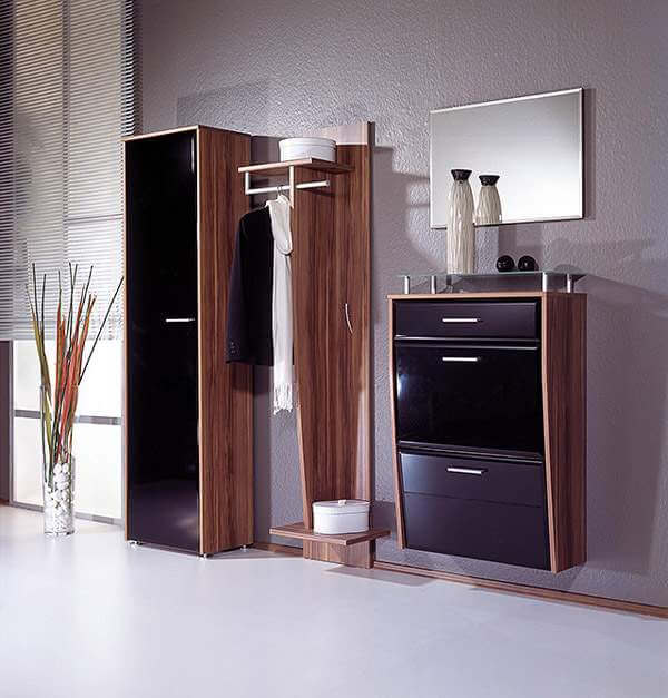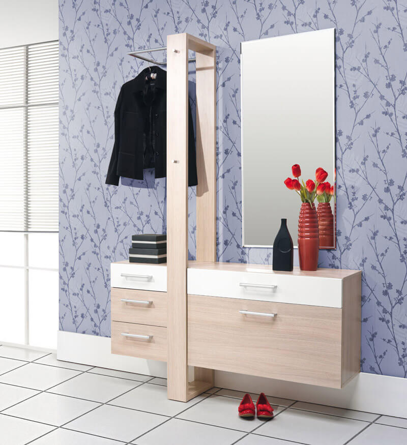 Les systèmes de stockage se composent généralement de plusieurs compartiments pour les petits et les grands articles. Il peut y avoir des étagères à chaussures en filet, des crochets pour clés ou parapluies, et un cintre ou un miroir est inclus. Certains modèles étroits servent de dessus de table, tout en ayant une large surface horizontale.