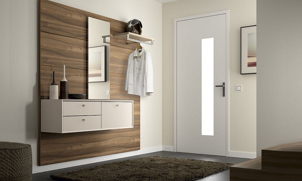 Traditionnellement, une bordure à charnière est rectangulaire ou carrée, mais il existe des modèles d'angle ou de conception originale. Souvent, il est livré avec un couloir entièrement équipé, comme une armoire et un porte-manteau.