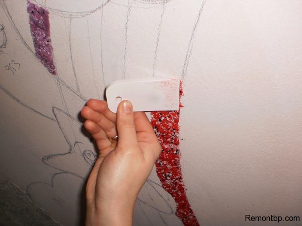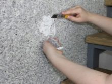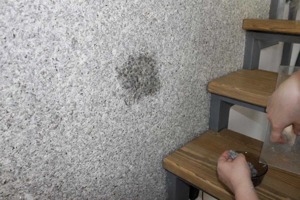 C'est l'un des avantages du papier peint liquide - la possibilité d'une réparation partielle, alors que de telles actions n'affecteront pas l'apparence de la pièce.