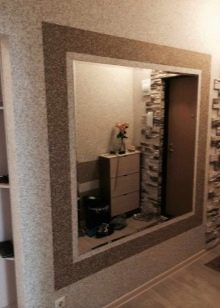 Les concepteurs ont combiné avec succès du papier peint liquide léger avec des éléments décoratifs supplémentaires sous la forme d'une pierre. Une option pratique et à la mode pour décorer le couloir.