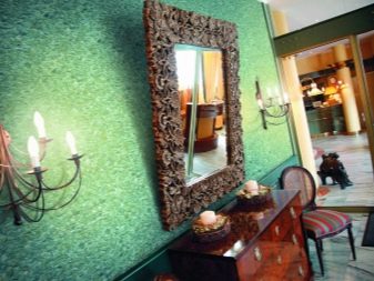 Pour décorer la pièce d'un jeu de lumière fantasque, le papier peint liquide peut être recouvert d'une couche de vernis. De plus, de nombreux designers le recommandent.