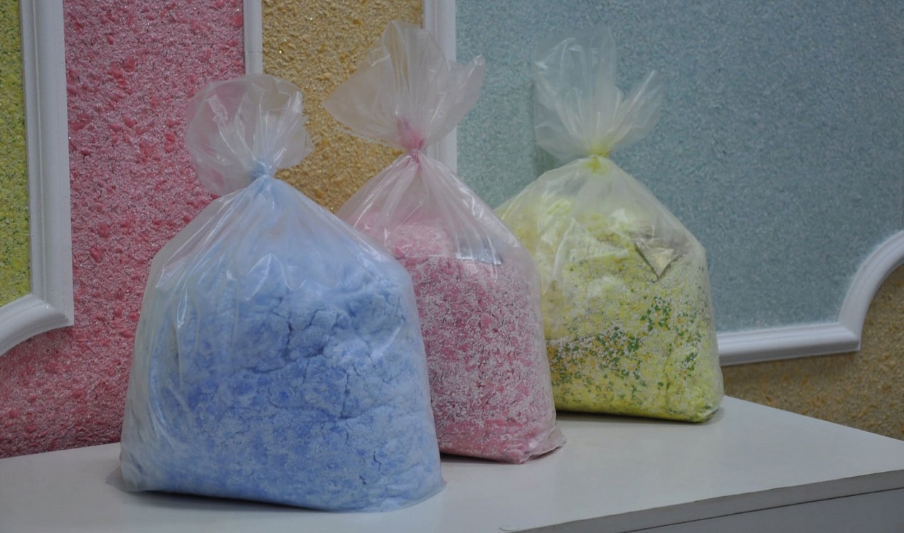 Pour rendre la composition résistante aux champignons et aux bactéries, des substances spéciales sont ajoutées au mélange. Et les fabricants mélangent également des paillettes et d'autres composants pour donner au produit fini des qualités esthétiques particulières.