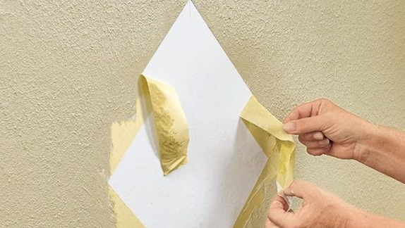 La deuxième option consiste à dessiner un contour à l'aide d'un pochoir. Pour commencer, les murs sont peints d'un ton, puis les marquages sont réalisés avec du ruban adhésif.