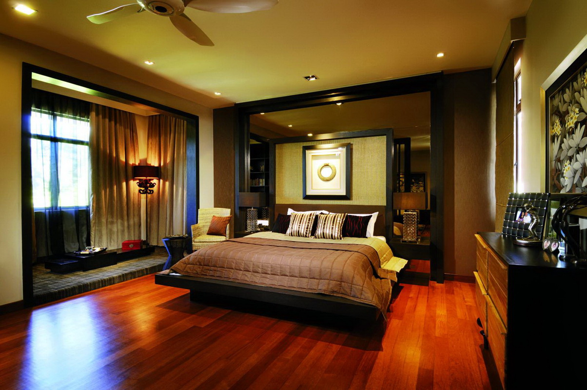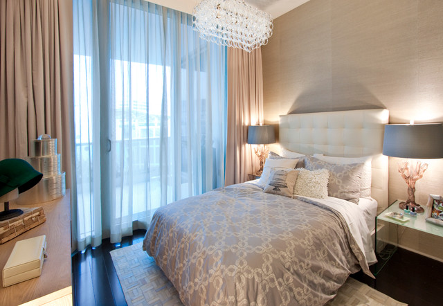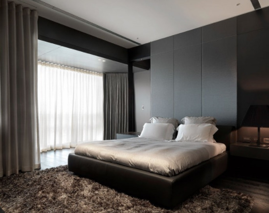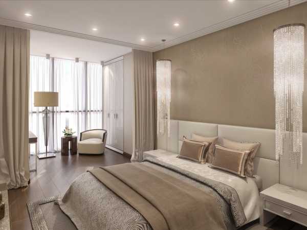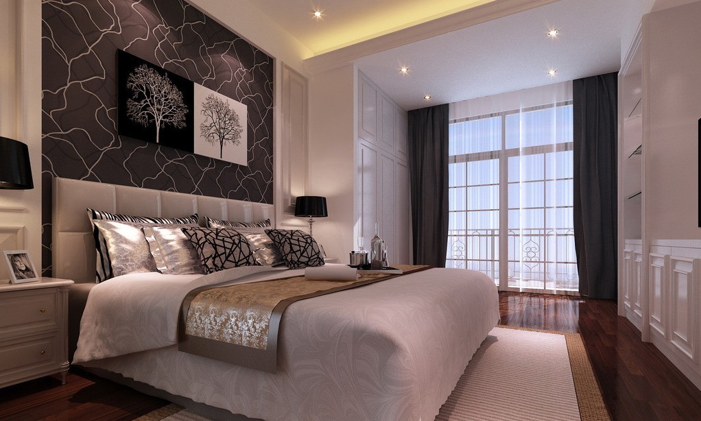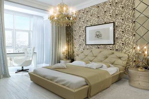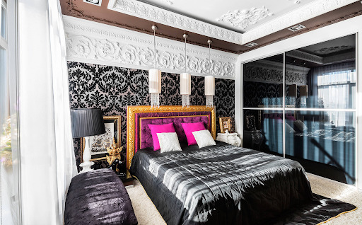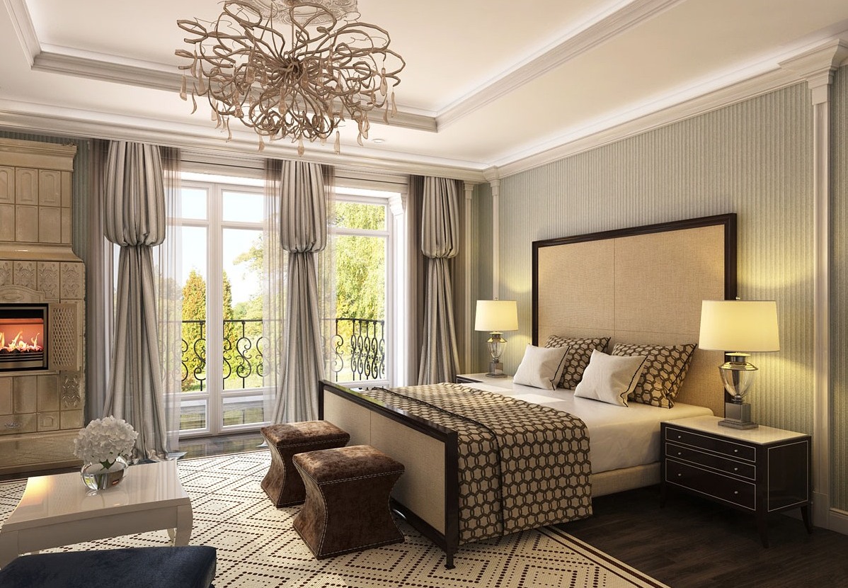 Les façades de meubles doivent avoir un aspect nettement coûteux. En général, vous pouvez décorer la pièce dans des couleurs claires neutres ou dans des contrastes sombres.La deuxième option est principalement utilisée lorsqu'ils souhaitent ajouter des références à l'Art Déco. Les sols sont décorés dans des tons brunâtres, parfois presque noirs. Il est recommandé de décorer la zone de couchage avec des ornements.