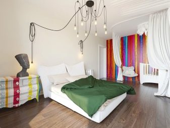 Une chambre combinée à un balcon est idéale lorsque l'éclairage central surpasse largement les lampes locales de dernière génération.