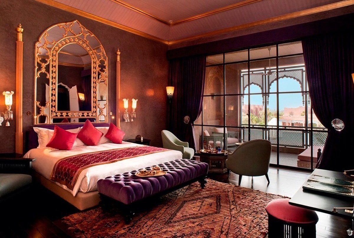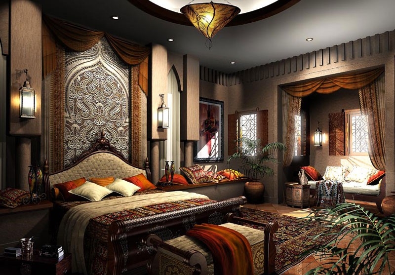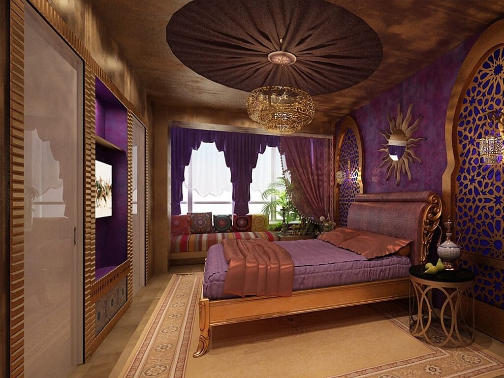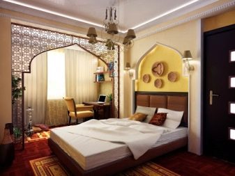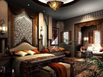 L'arabe, c'est aussi la branche marocaine, implique l'utilisation active du rouge, du jaune, du bleu, du bleu et d'autres couleurs. Si le design est plus proche de la sous-espèce marocaine, alors plus de blanc est introduit. Ce sera une excellente toile de fond pour les meubles et les couleurs vives. La peinture métallisée est autorisée. Le style arabe classique est visuellement plus lourd ; l'introduction à l'intérieur des arcs et des ornements géométriques est la bienvenue.