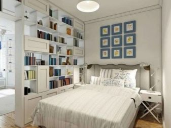 Si la superficie de la pièce est de 14 m². m., alors il est tout à fait possible de mettre non seulement un lit avec une table de chevet. Dans de telles pièces, il existe déjà des possibilités d'organiser des zones séparées. Le lit doit être placé en diagonale par rapport à la porte. Dans une pièce étroite, il doit être placé près de la fenêtre et non en travers, afin de ne pas créer de problèmes graves.Le zonage est réalisé à l'aide de rayonnages légers; les systèmes de stockage multifonctionnels sont les bienvenus.