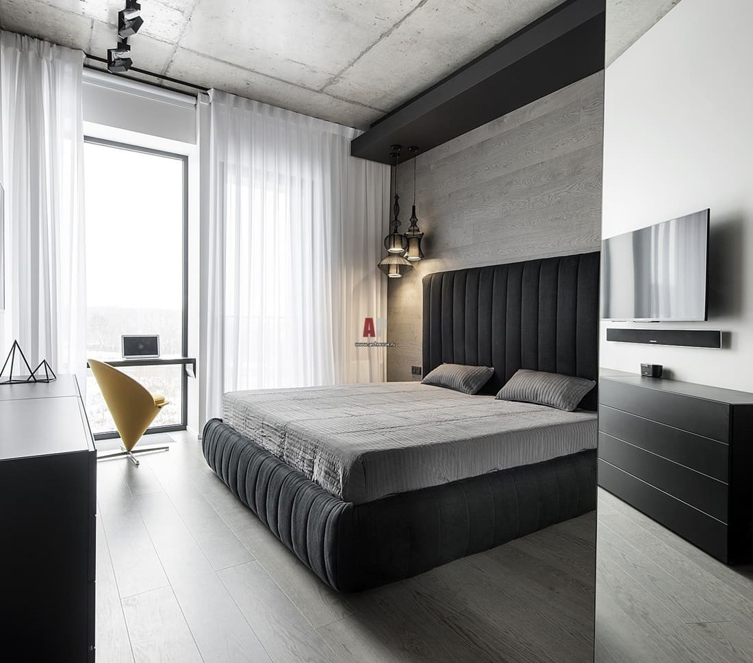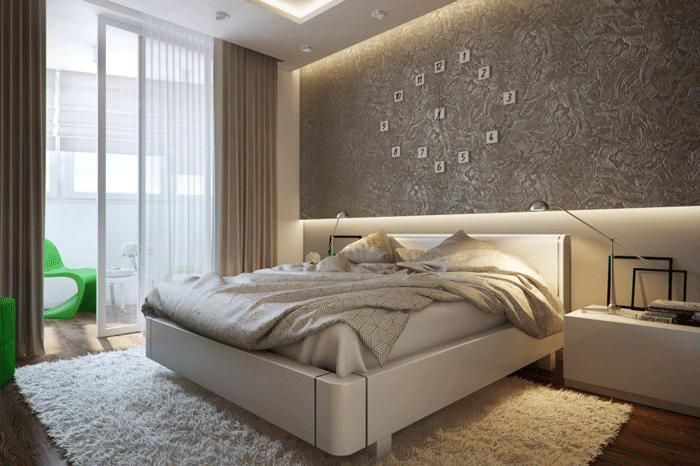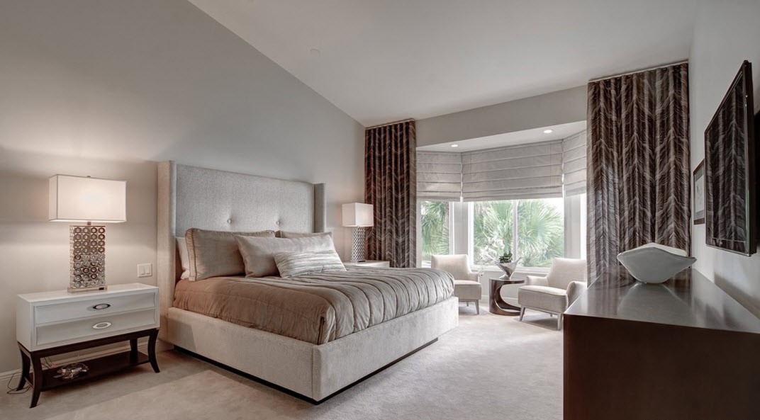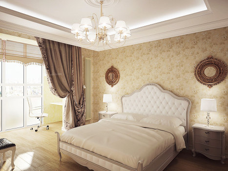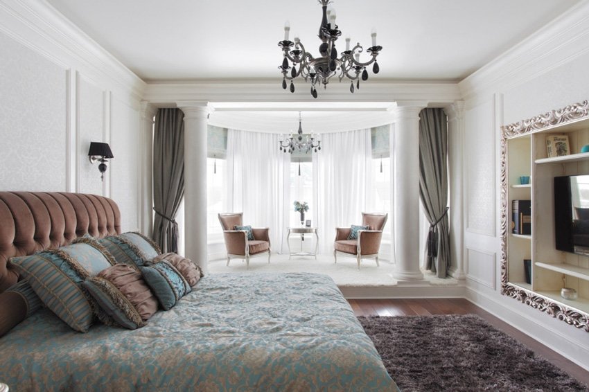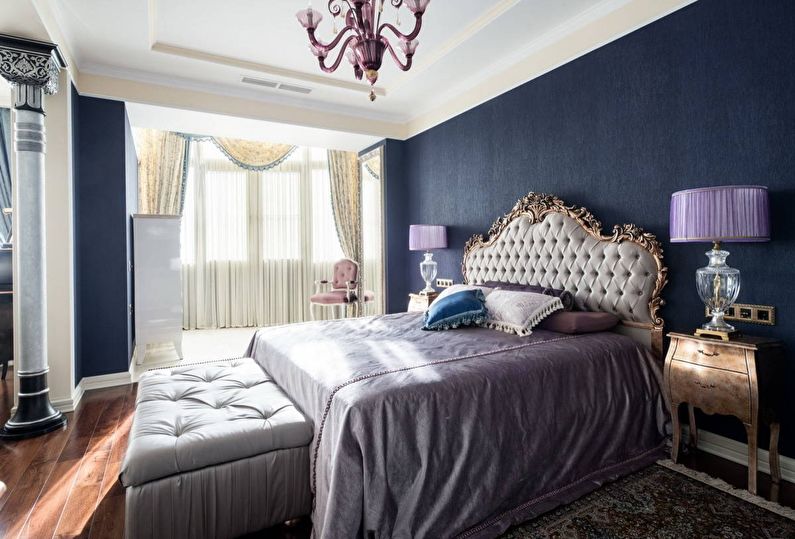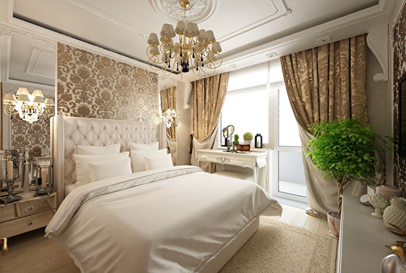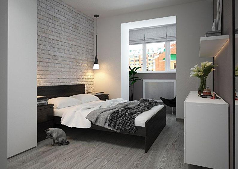 Ce type de conception de chambre avec balcon est très demandé. Ce design est assez élégant et attrayant. Mais il faut soigneusement éviter à la fois une prétention excessive et un parti pris en faveur du côté conservateur.