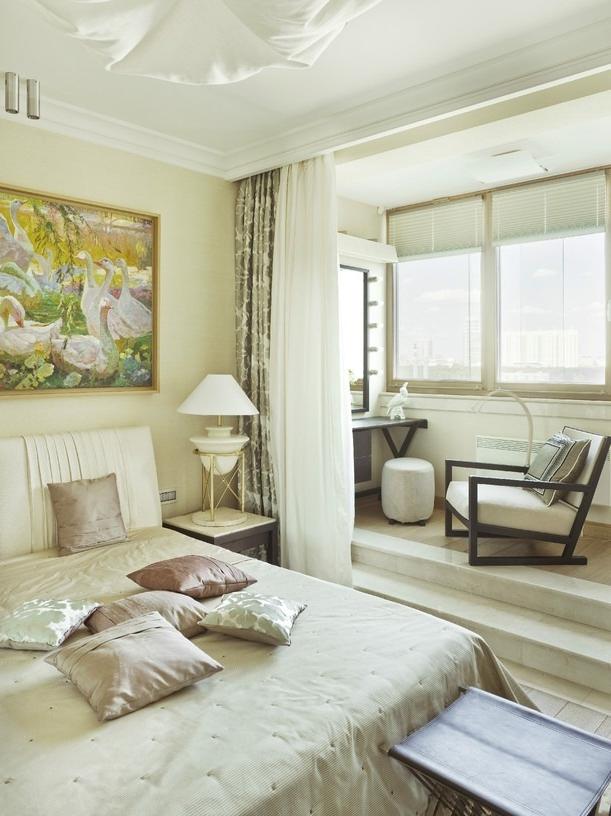 La chambre, combinée à une loggia, vous permet d'utiliser plus efficacement l'espace de l'appartement et d'obtenir un design très intéressant. Cependant, vous devez aborder un tel sujet avec sagesse, car vous devrez vous conformer aux restrictions du plan juridique.