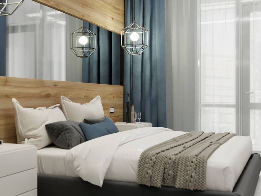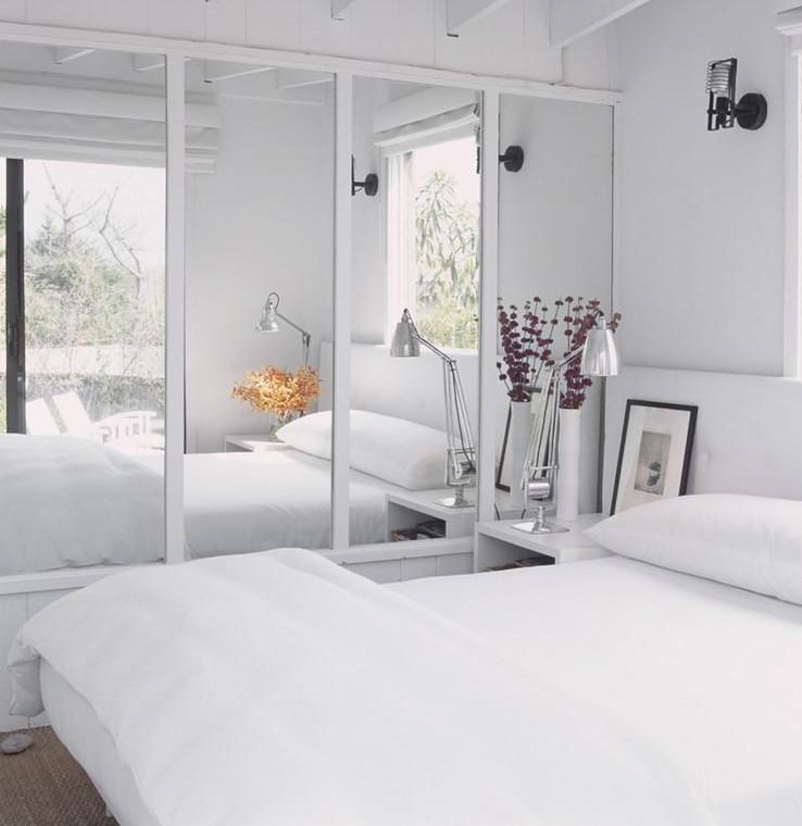installation de miroirs derrière le lit;