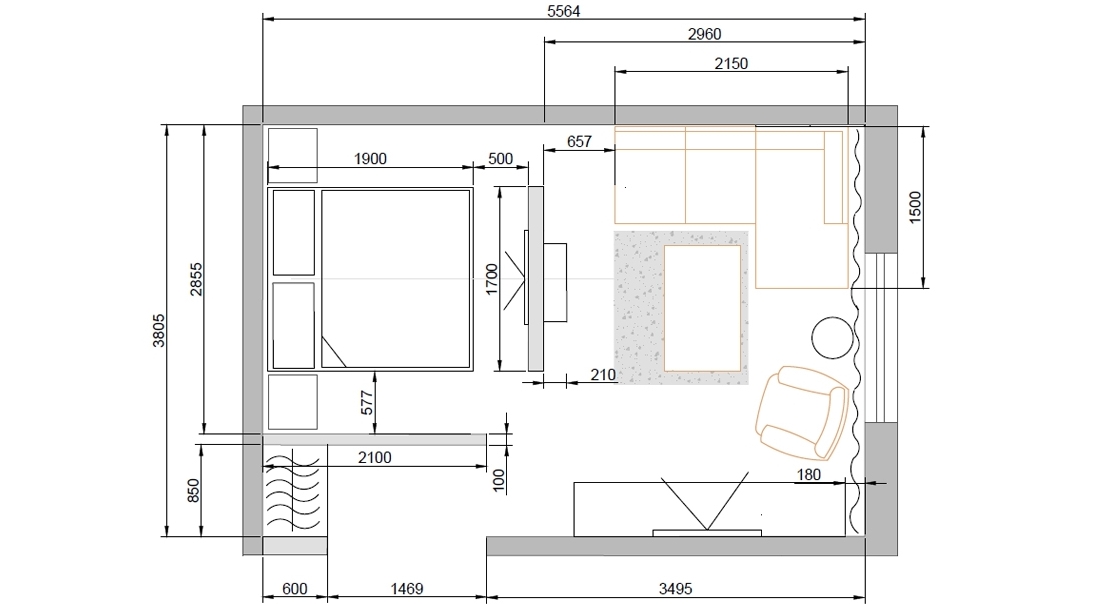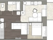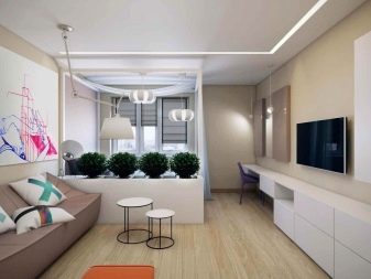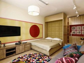 En fait, beaucoup de gens rêvent d'une chambre complète. Cependant, étant donné le nombre limité de compteurs gratuits, vous devez combiner à la fois une chambre et un salon dans un même espace. Ainsi, lors de la planification, nous devons garder à l'esprit un certain projet de salon-chambre.