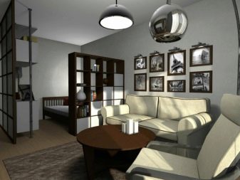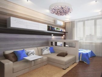 Une chambre d'une superficie de 20 m². m vous permet de le diviser sereinement en plusieurs zones pratiques et fonctionnelles. Le lieu de couchage du salon du territoire peut être facilement isolé avec une cloison en bois ou en plaques de plâtre. De plus, il est préférable de faire des cloisons non solides, mais de laisser des zones transparentes ou en treillis. Il y aura donc beaucoup de lumière dans la pièce et, en soi, elle ne se transformera pas en une sorte de bureau.