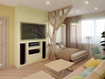 Créer un lit mezzanine peut sembler intéressant. Cela permettra d'économiser beaucoup d'espace et, en plus de la chambre, vous pouvez essayer de créer un bureau à part entière ou au moins un lieu de travail dans le même espace.