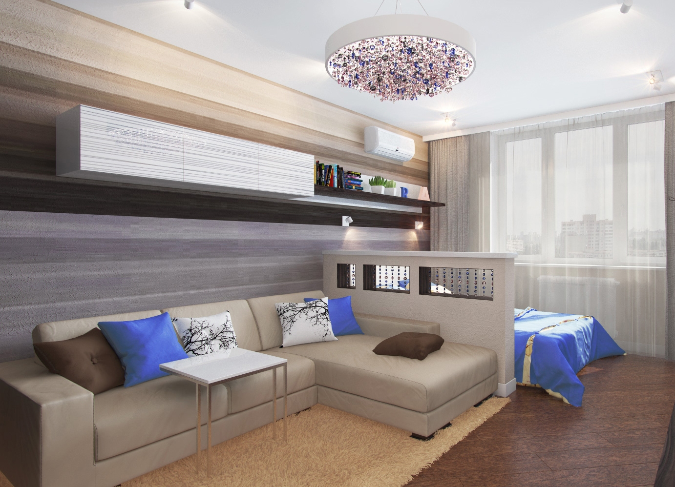 Probablement, peu de gens contesteront le fait que dans le salon, et encore plus dans la chambre, nous passons le plus de temps. Ce sont les domaines où nous essayons de toutes nos forces de créer cet espace très personnel, de les équiper autant que possible, de les remplir de confort et de sens. La chambre et le salon sont des pièces où il faut se reposer corps et âme. Et les combiner dans un seul espace ne donne qu'une importance particulière aux fonctions que chacun remplit séparément. Dans notre article, nous essaierons de démonter et de systématiser ces idées et approches de conception qui, peut-être, inspireront les changements les plus précoces possibles dans l'environnement domestique.