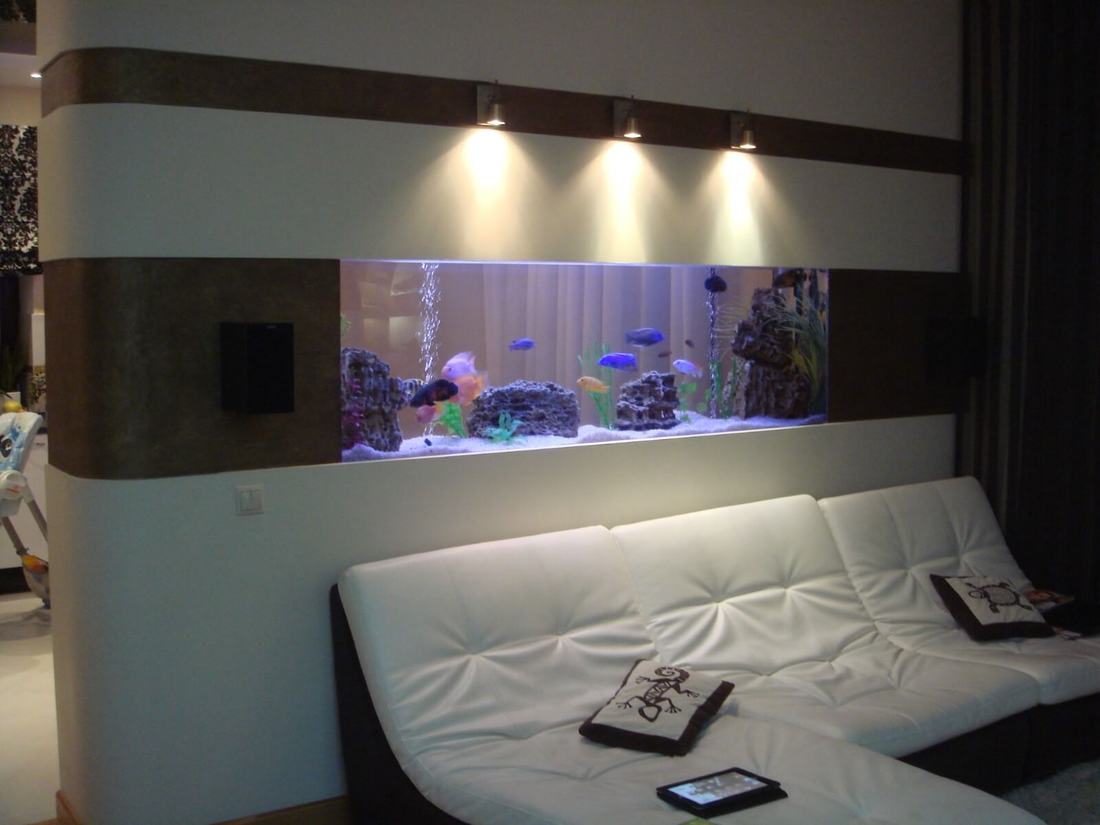 Si vous aimez la mer ou, en général, l'élément eau, un aquarium peut être intégré à la cloison. Mais ici, nous devons nous rappeler que l'aquariophilie, bien que n'étant pas une science si difficile, nécessite toujours une certaine formation théorique.