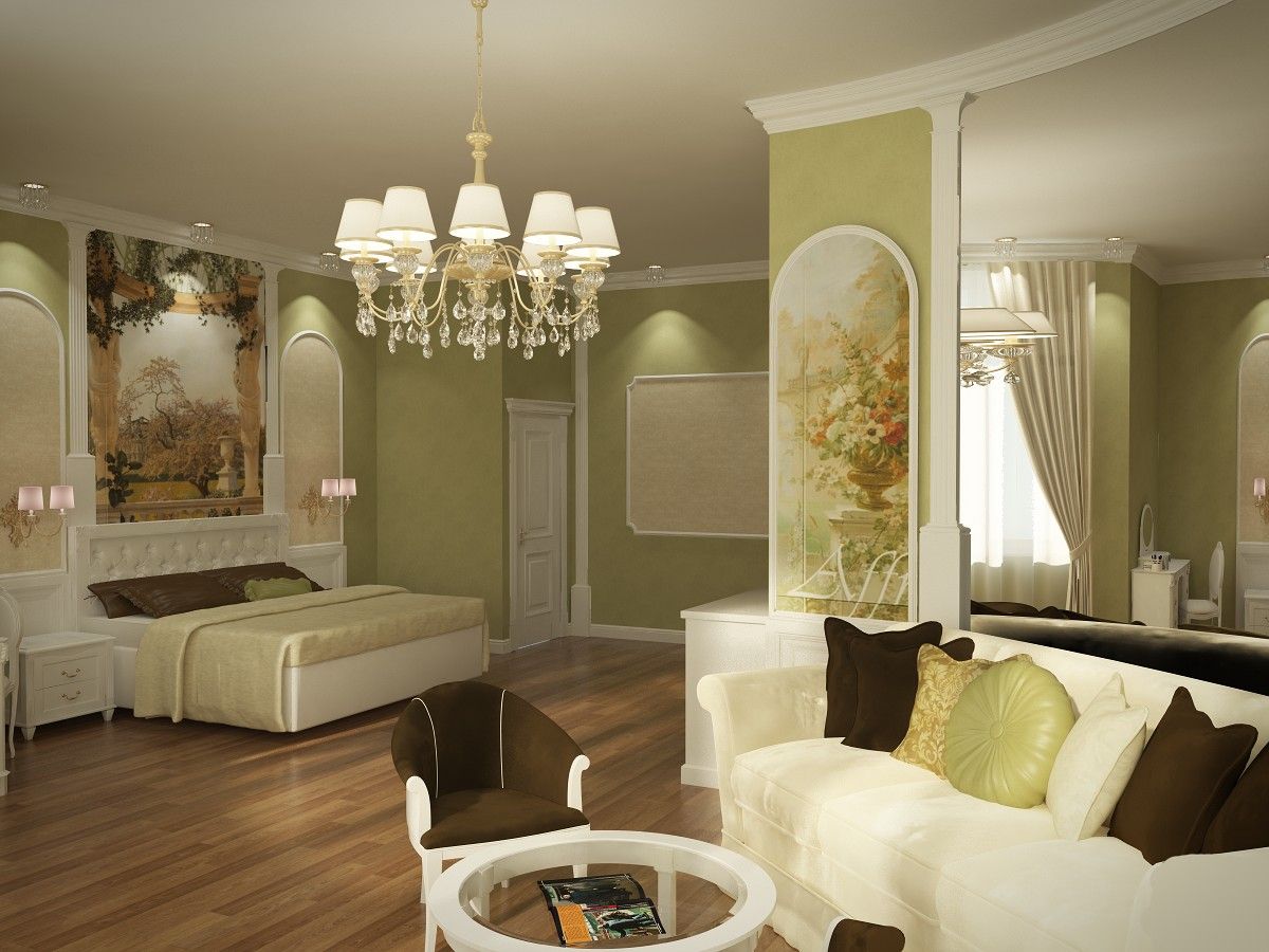 Malheureusement, du fait que la superficie de votre chambre-salon est limitée à seulement 20 mètres carrés, tous les styles ne conviennent pas à sa décoration. Le remplissage classique avec son faste et son luxe ne pourra en aucun cas s'intégrer pleinement dans un tel espace, vous n'aurez donc recours qu'à quelques styles de design.