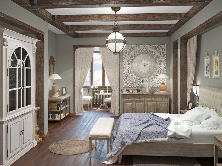 Ce style permet l'utilisation de cloisons, la décoration des murs des pièces avec des matériaux stylisés comme la maçonnerie. Et aussi l'utilisation de poutres de plafond n'est pas interdite.