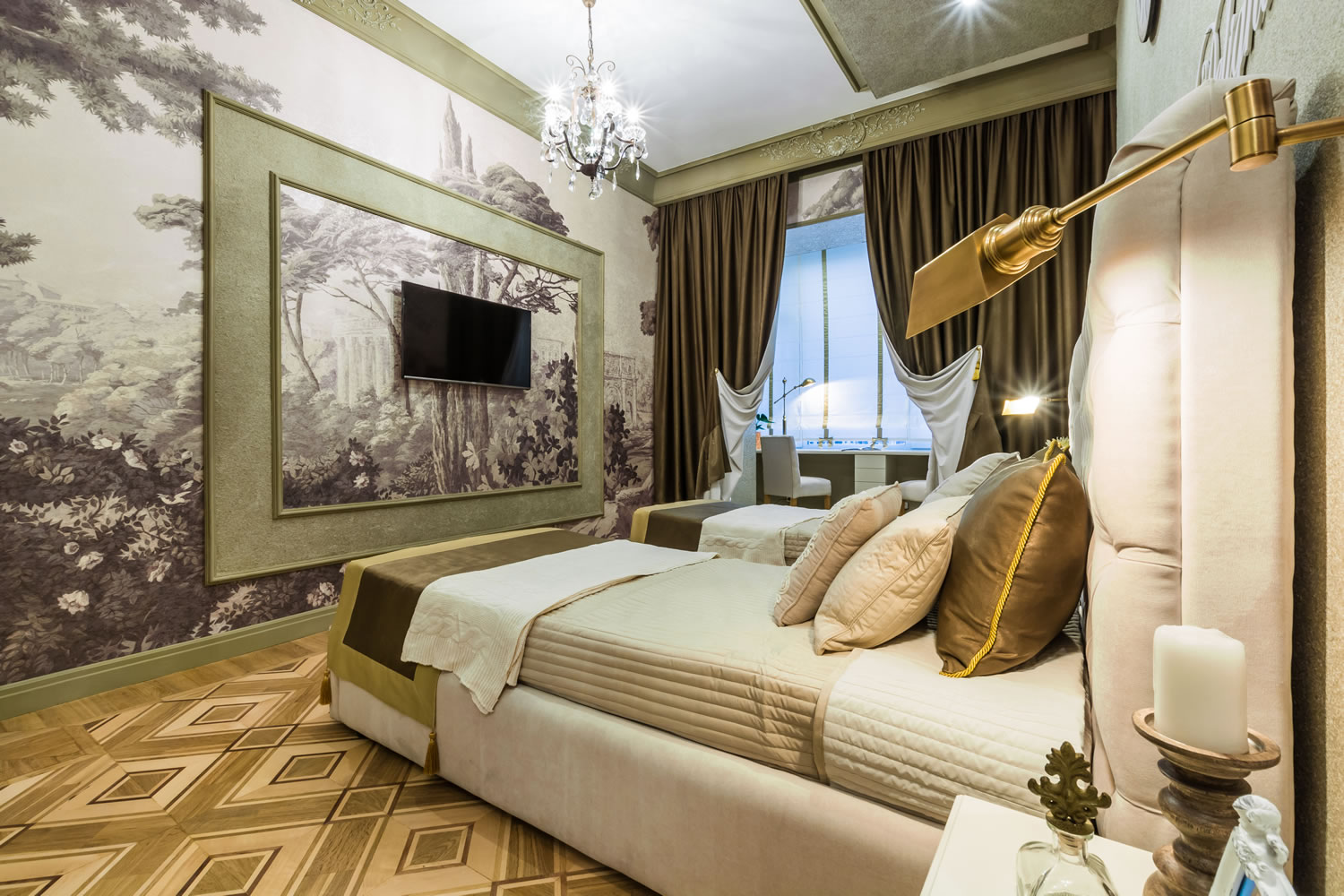 Vous pouvez ajouter des touches supplémentaires au design à l'aide d'éléments décoratifs, par exemple décorer une chambre classique avec de la tapisserie ou créer une pièce noire dans un style moderne avec des éléments blancs comme neige.