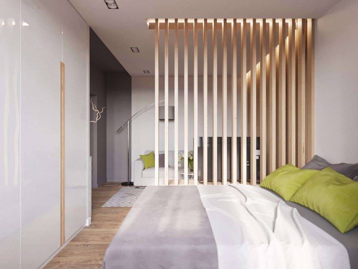 Un autre cas d'utilisation des rails est zonage de la pièce... La décoration en relief divisera instantanément la pièce en emplacements séparés. Cette version de la partition ne prendra pratiquement pas d'espace libre et ne réduira pas la visibilité. Ce type de matériau de finition répète le motif et la couleur du panneau stratifié. Le bois donne de l'expressivité et du charme à l'intérieur. Un tel matériau ne perd pas sa pertinence quelles que soient les tendances de la mode. Avec son aide, il est possible de mettre en valeur favorablement une toile haute, à l'aide d'éléments fluides.