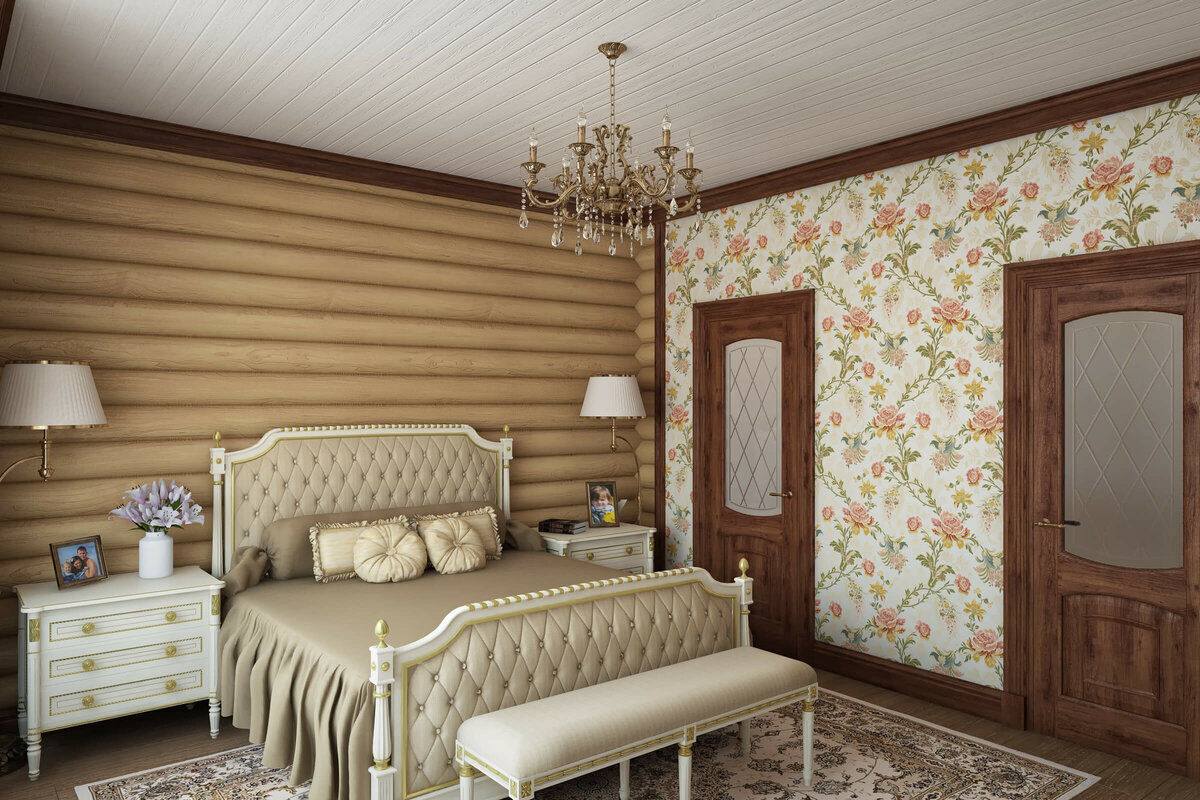 Cette option de finition ressemble extérieurement à une imitation d'un bar, qui est également souvent utilisée pour la conception d'une chambre.