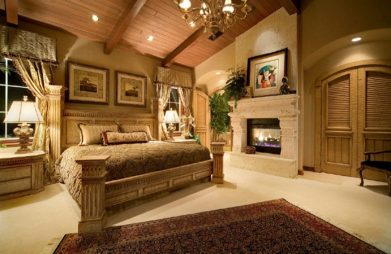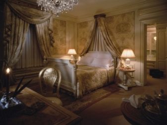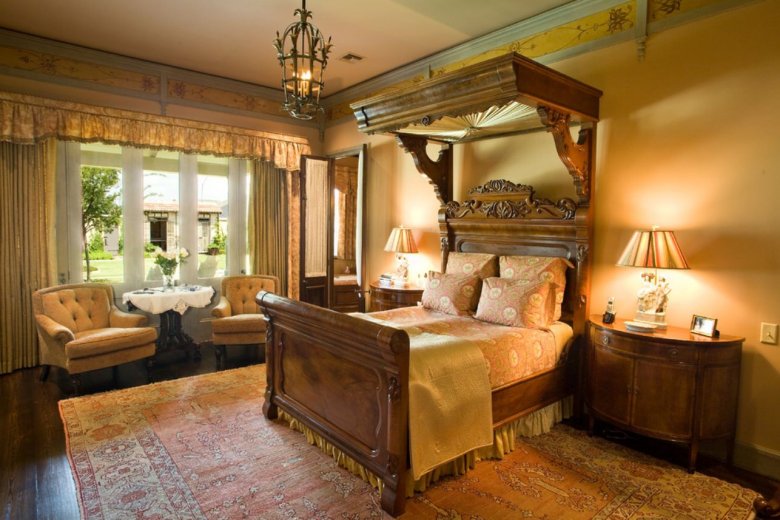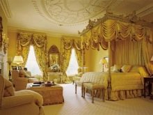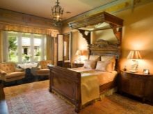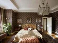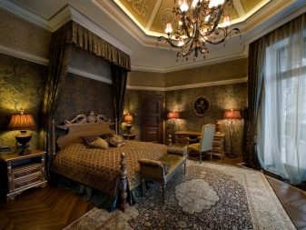 - Victorien. Compte tenu du fait que la chambre principale est apparue pour la première fois dans les domaines anglais, cette direction stylistique est une excellente solution pour la décoration intérieure. La particularité du style est la présence de couleurs claires et de sérigraphie sur le mur, de meubles forgés et sculptés, ainsi que d'un grand nombre d'éléments décoratifs vintage. De grands tableaux avec de grands cadres, des bougies et des chandeliers peuvent être utilisés pour créer des accents.