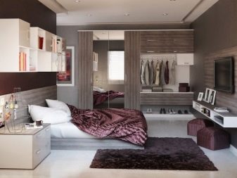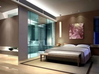 Pour que cette pièce soit la plus pratique possible à vivre, il faut faire très attention à son agencement, qui peut être différent. Par exemple, dans la même pièce, il peut y avoir un dressing et un coin salon, ils peuvent être divisés à l'aide d'une cloison spéciale. Dans ce cas, vous devrez allouer une pièce séparée pour la salle de bain.