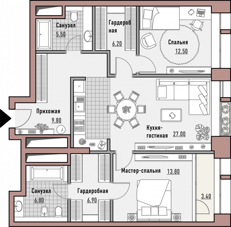 Une chambre principale est une chose courante pour les résidents des pays occidentaux, cependant, de tels phénomènes sont assez nouveaux pour les marchés intérieurs. Cette chambre est prévue pour le chef de famille et son compagnon. Aujourd'hui, cette pièce est généralement la plus grande et la plus joliment décorée de l'appartement. De plus, il comprend plusieurs espaces, dont un coin couchage, un dressing, une salle de bain et un balcon. Le dressing peut être soit une pièce séparée, soit une zone spéciale avec des étagères. Et dans la salle de bain, une douche fonctionnelle, des cuvettes de toilettes et plusieurs lavabos sont généralement installés.