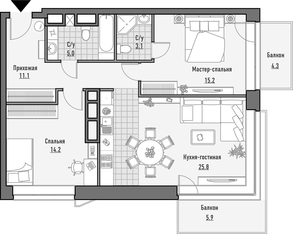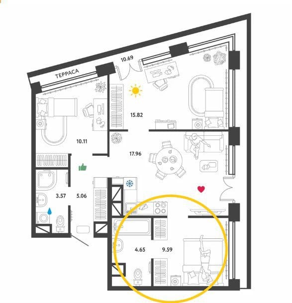 Il convient de noter que le reste des pièces est largement plus petit en taille et en fonctionnalité par rapport à la chambre principale.