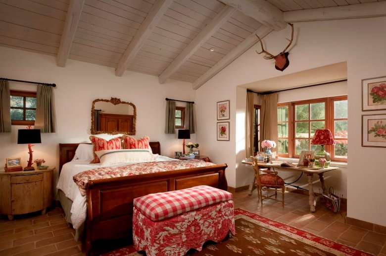 - Pays. Cette direction stylistique est idéale pour créer une chambre principale. Dans le processus d'aménagement intérieur, il est impératif d'utiliser exclusivement des matériaux naturels. Les couleurs les plus douces et les plus relaxantes sont utilisées comme couleurs de base, parmi lesquelles on distingue les tons pastel et le brun clair. Et si vous le souhaitez, certains éléments intérieurs peuvent être réalisés à la main.
