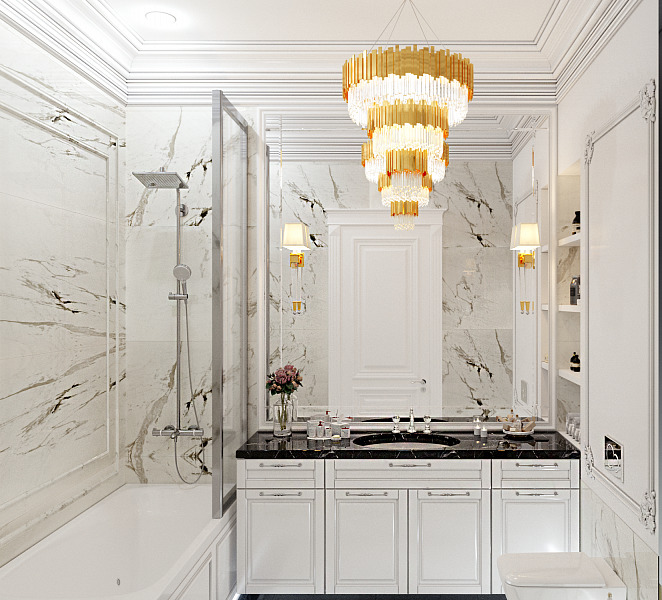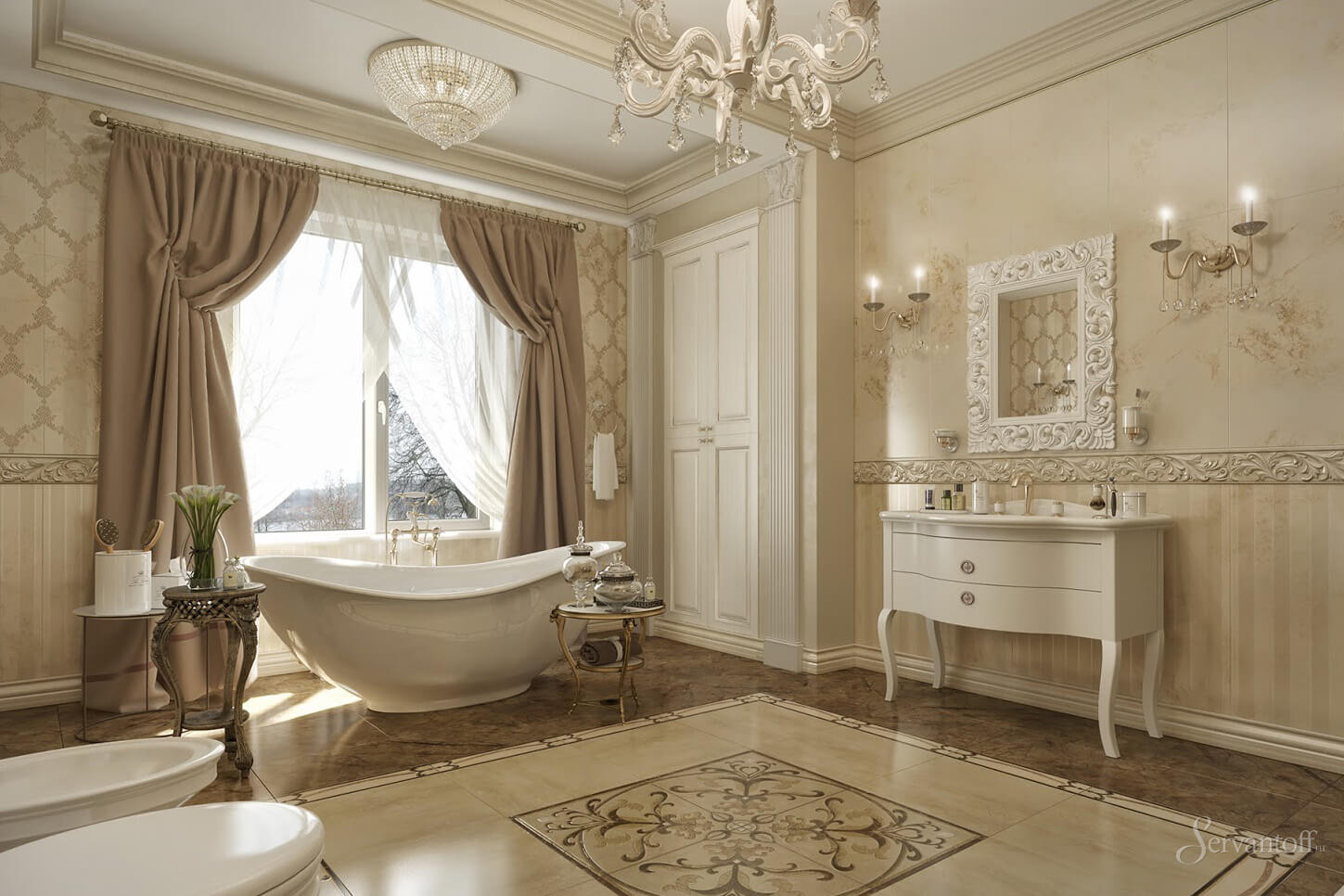 Les murs peuvent être décorés de moulures en stuc, et la salle de bain dispose généralement d'une grande baignoire.