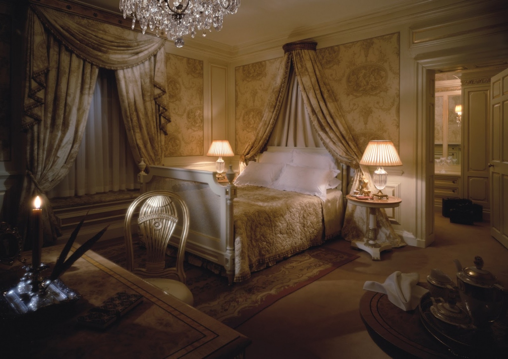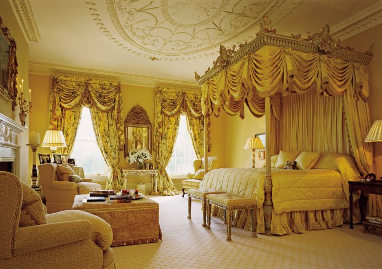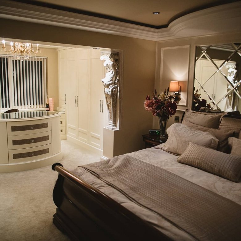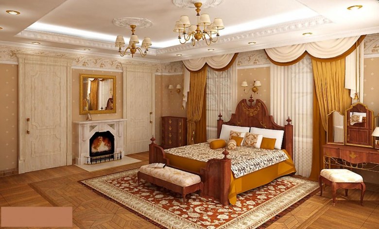 - Chambre des maîtres de style classique avec beaucoup de stuc et d'autres éléments décoratifs.