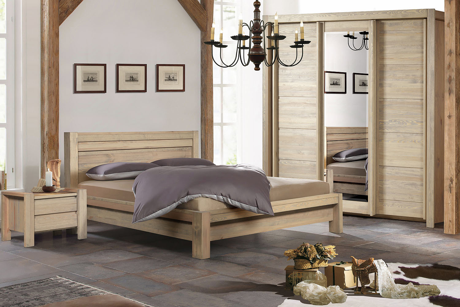 Chambre "Valence" en placage et chêne massif dans la couleur chêne blanchi. Le kit comprend :