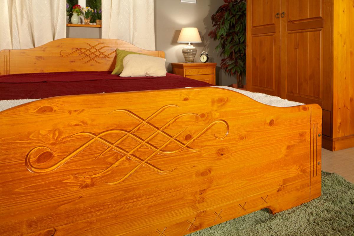 La tête de lit est décorée d'inserts sculptés. Le matelas est installé sur les lattes.