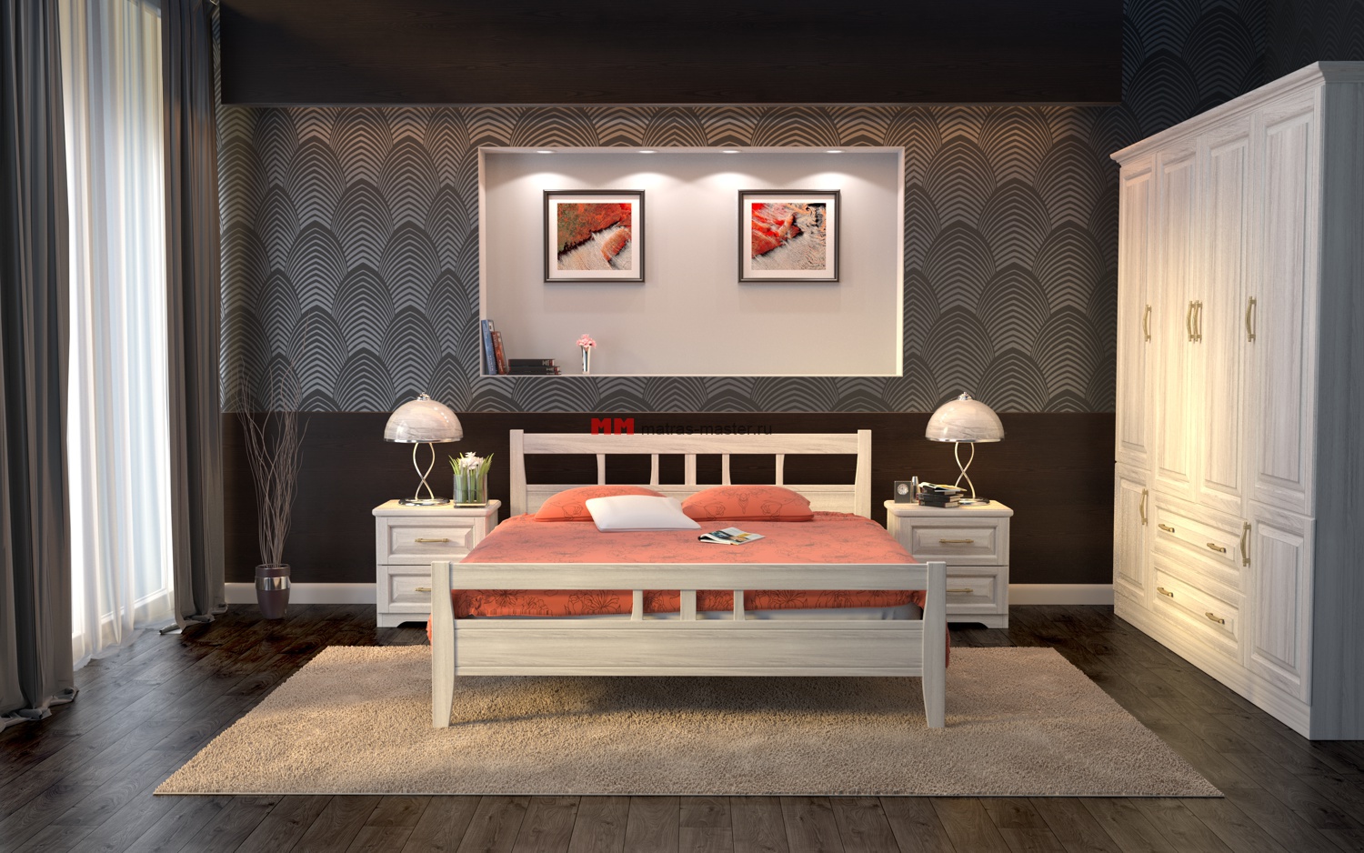 - Set "Madère" du fabricant biélorusse "Dipriz" - c'est la meilleure option pour ceux qui préfèrent les classiques des années 60-70. L'ensemble est en pin massif de couleur blanche. L'ensemble comprend un lit double, une commode en deux versions, une table de chevet, une armoire trois ou deux parties, une étagère, un miroir. Tous les produits n'ont pas de décor supplémentaire et chic, tout est strict et simple.