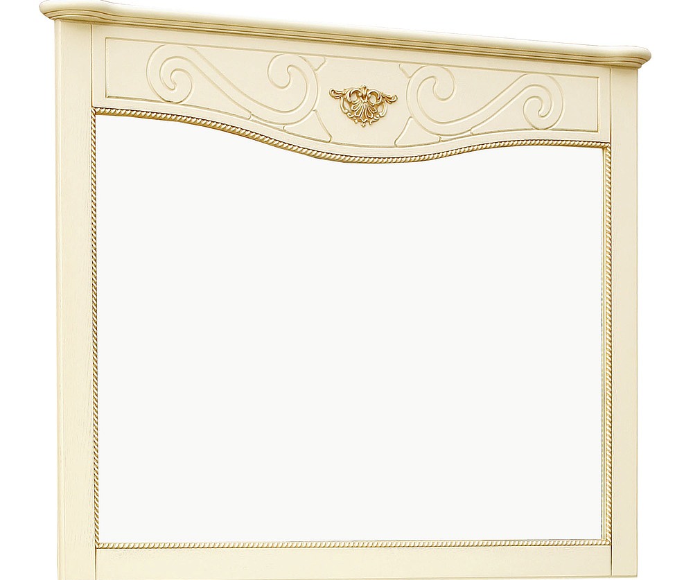 - La chambre Eliana de Slonim est en MDF blanc. Le kit comprend un lit chic 1800x2000 avec une tête de lit moelleuse, une table de chevet 632x475x611 mm, un miroir 1112x1027 mm, un pouf 420x340x405 mm, une armoire six portes 2699x2448x678 mm avec miroirs, une coiffeuse 1700x501x756 mm. Tous les éléments sculptés sont décorés de peinture dorée. Les portes des armoires et les armoires sont semi-circulaires.