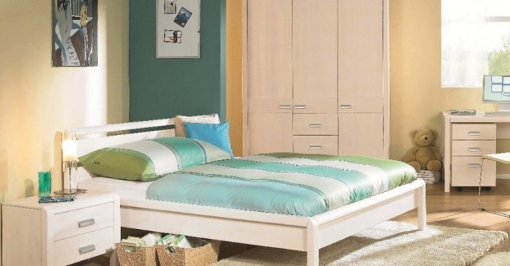 L'ensemble de meubles pour la chambre "Rouen" de couleur coloniale est réalisé, respectivement, en pin massif. L'ensemble peut être assemblé à partir de plusieurs options de lit. Ils diffèrent par la taille - d'un an et demi au double. Tous ont un design classique strict.