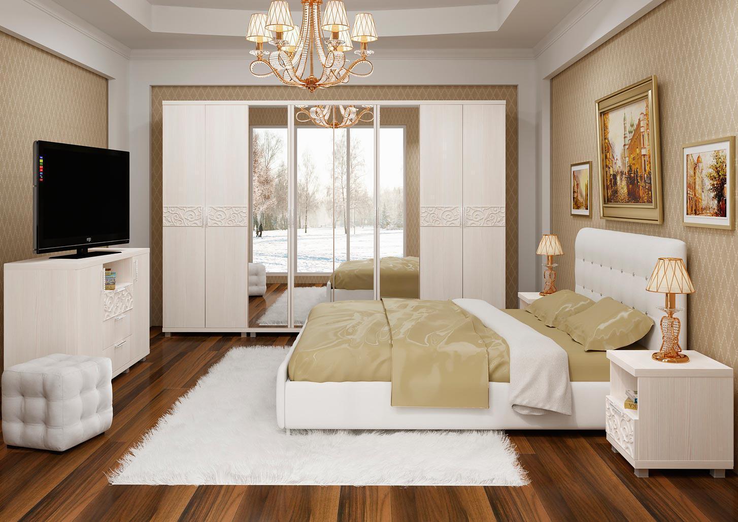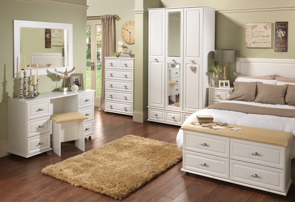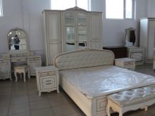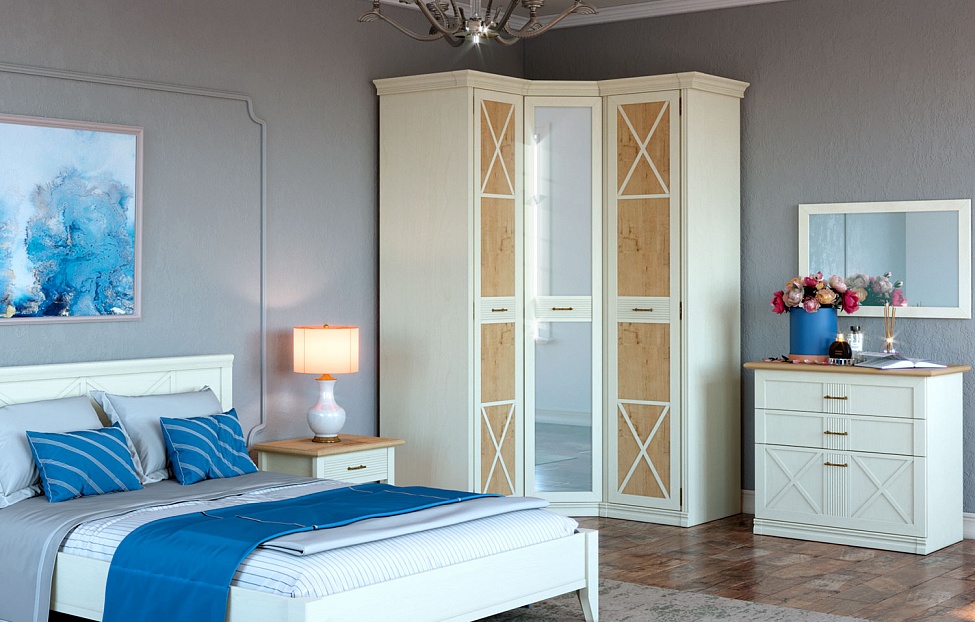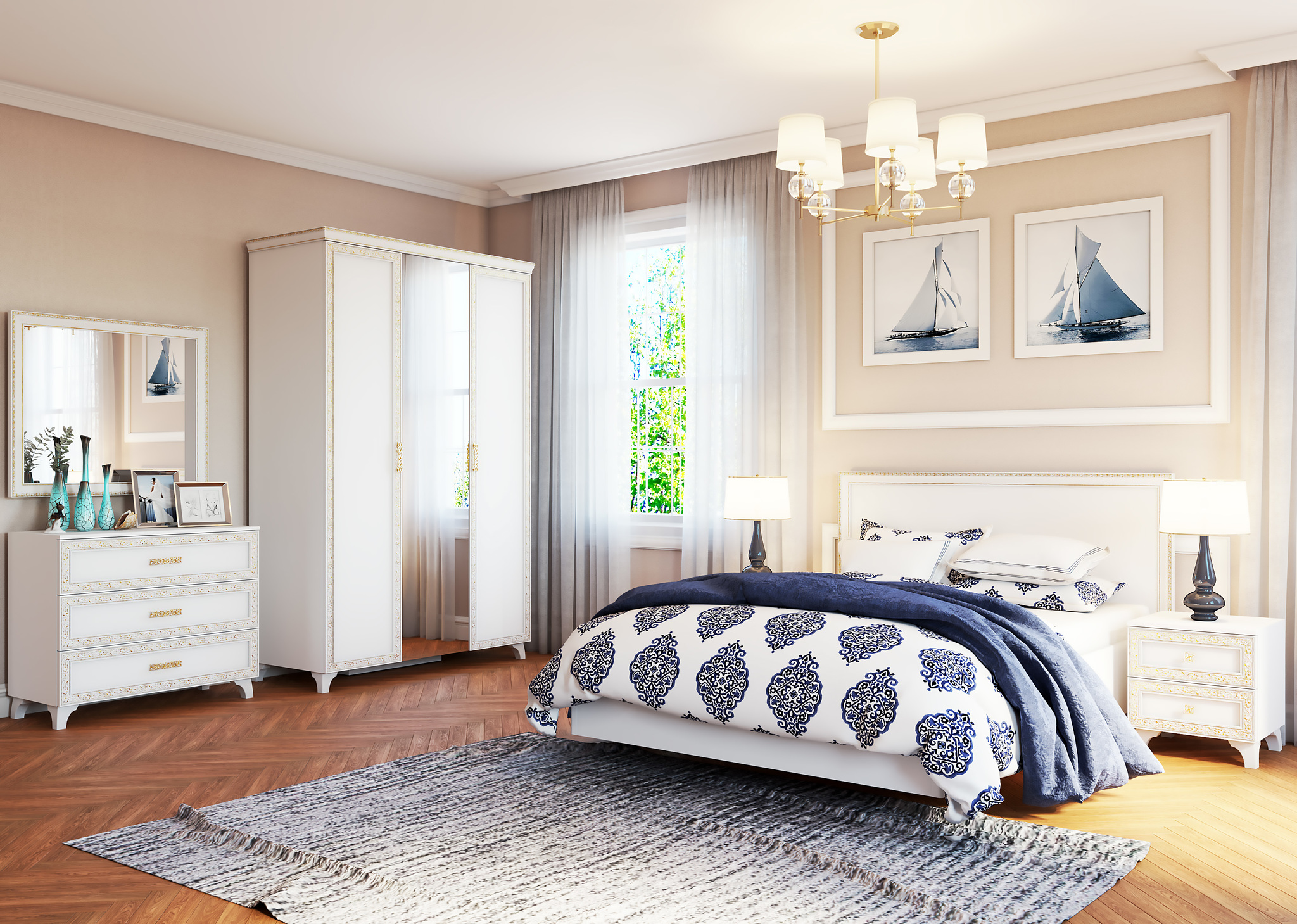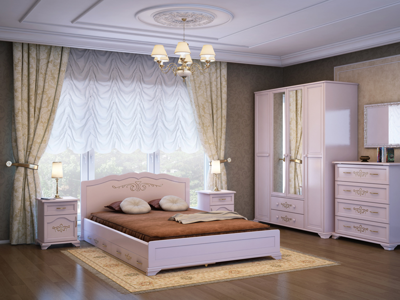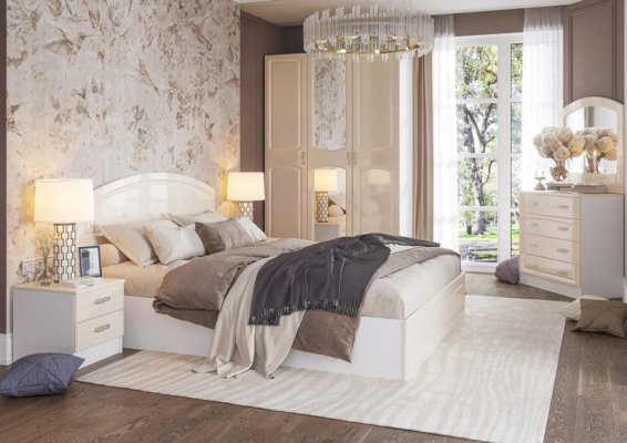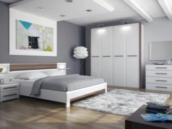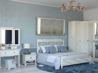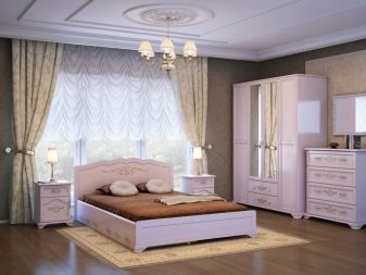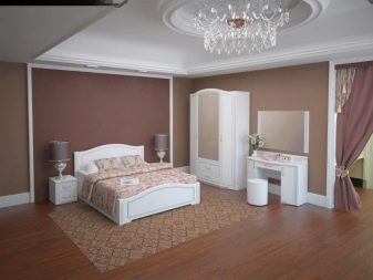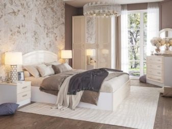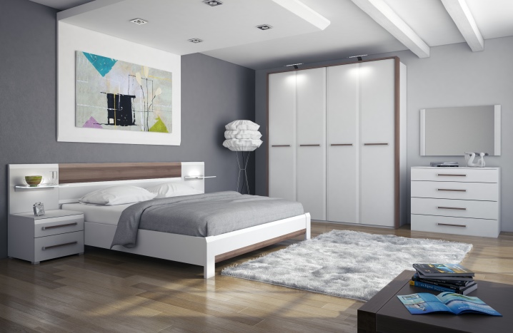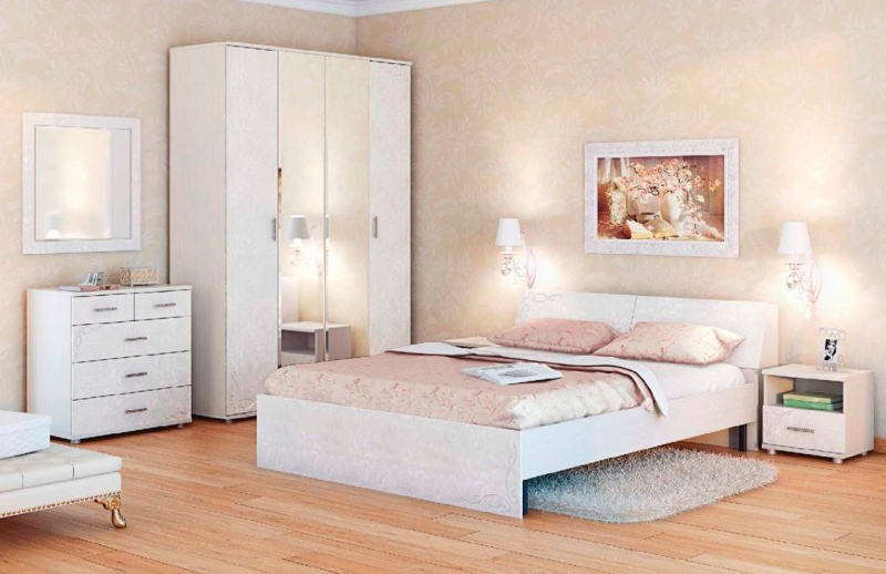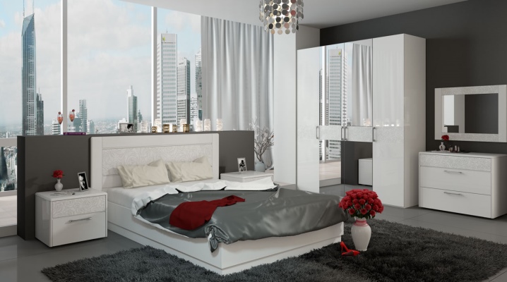 En règle générale, les meubles de chambre se composent d'un lit, de tables de chevet et d'une armoire. Il s'agit d'un ensemble de base qui peut être étendu. L'équipement étendu comprend un meuble TV, une table basse ou une coiffeuse, une commode, des poufs rembourrés et un banc. Dans certains cas, le casque peut inclure un bureau, un fauteuil ou une chaise longue.