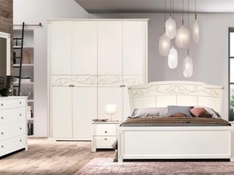 L'éclairage d'une chambre avec une suite blanche, en général, doit être choisi avec soin. S'il est jaune, le meuble lui-même acquiert visuellement une teinte jaune. Ou à l'autre extrême, un éclairage froid, qui peut être inconfortable lorsqu'il est associé à certains blancs.