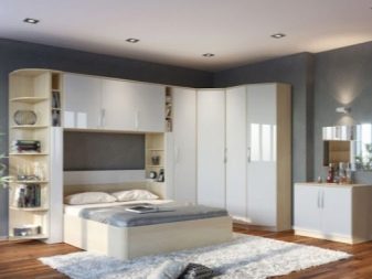 Un ensemble de chambre à coucher peut être combiné par des façades et ressembler à un seul coin, c'est-à-dire qu'il ne s'agit pas nécessairement de meubles séparés. Le résultat est un mur unique dans lequel s'enfonce la tête du lit. Si le casque est modulaire, il peut être facilement réorganisé pour que la disposition actuelle soit aussi organique que possible.