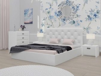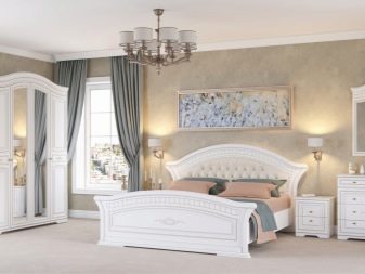 L'élément le plus important du casque est le lit. La largeur varie de 140 à 200 cm.Les casques ne sont pas toujours avec les lits doubles. Il existe des options pour les adolescents et les célibataires. Le lit dans la chambre est la place centrale et, avec l'armoire, il occupe une grande partie de la pièce. Son design peut être prédominant pour tout l'intérieur.