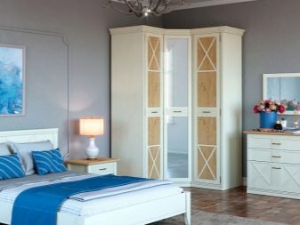 Pour les petites pièces, il est recommandé de choisir des armoires étroites ou d'angle. Ils sont assez spacieux et prennent moins d'espace libre. Les armoires coulissantes sont indispensables pour les allées étroites, car elles n'ont pas besoin de place pour ouvrir les portes.