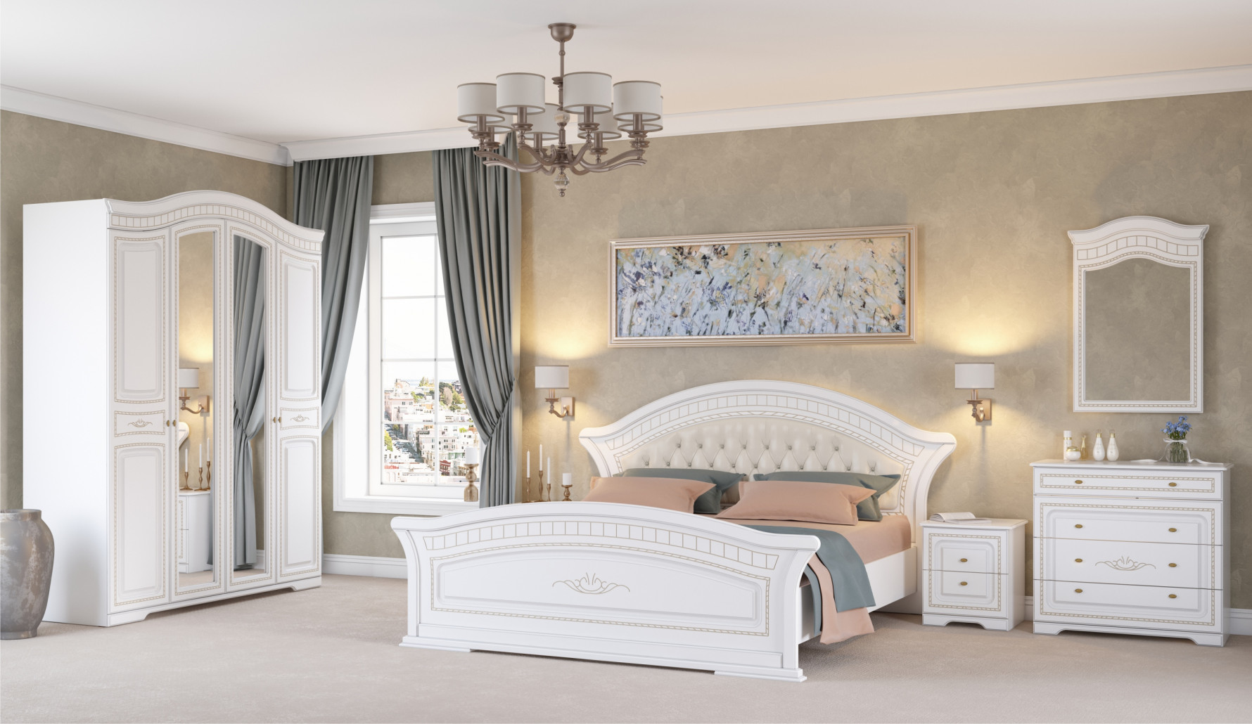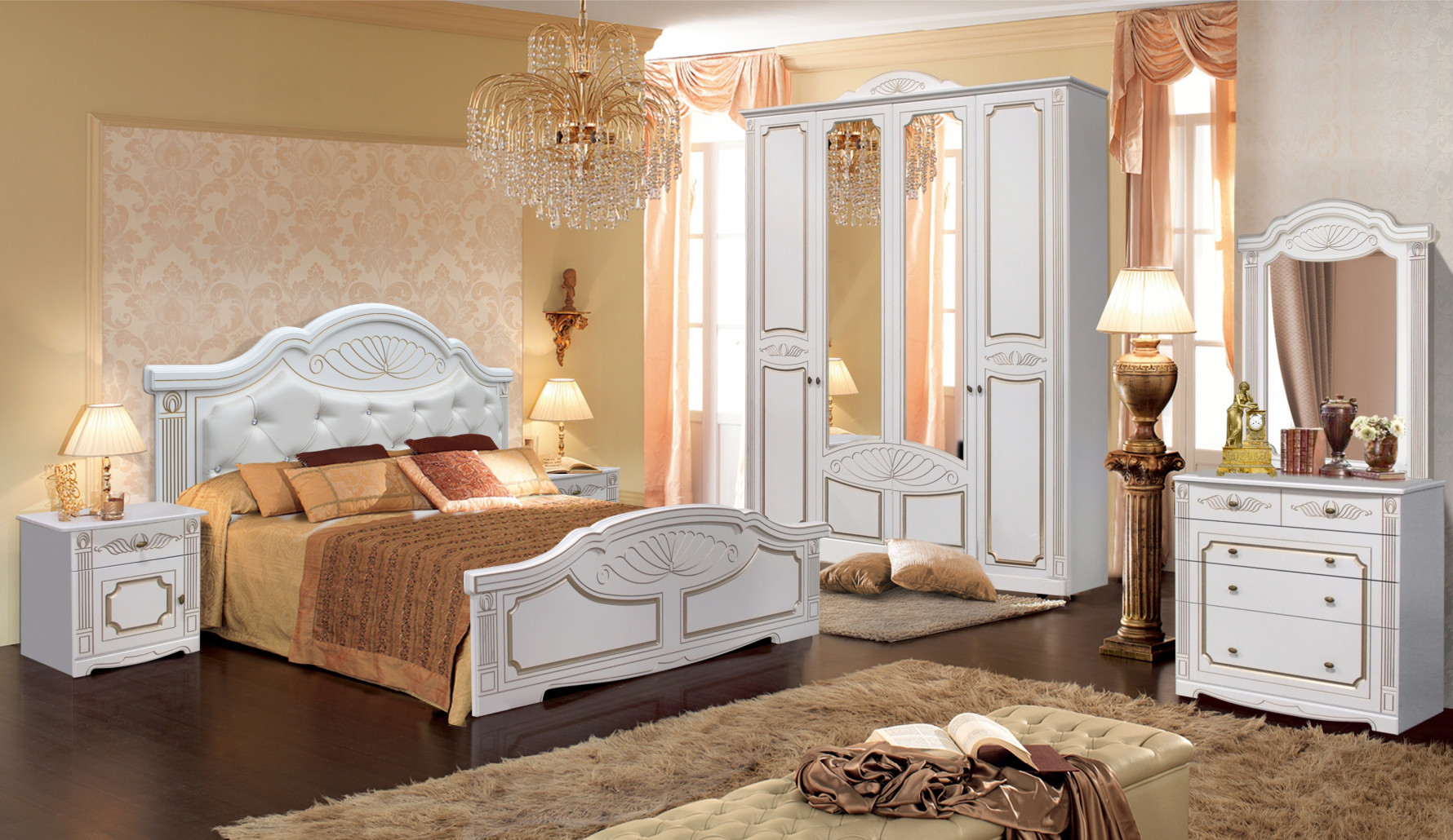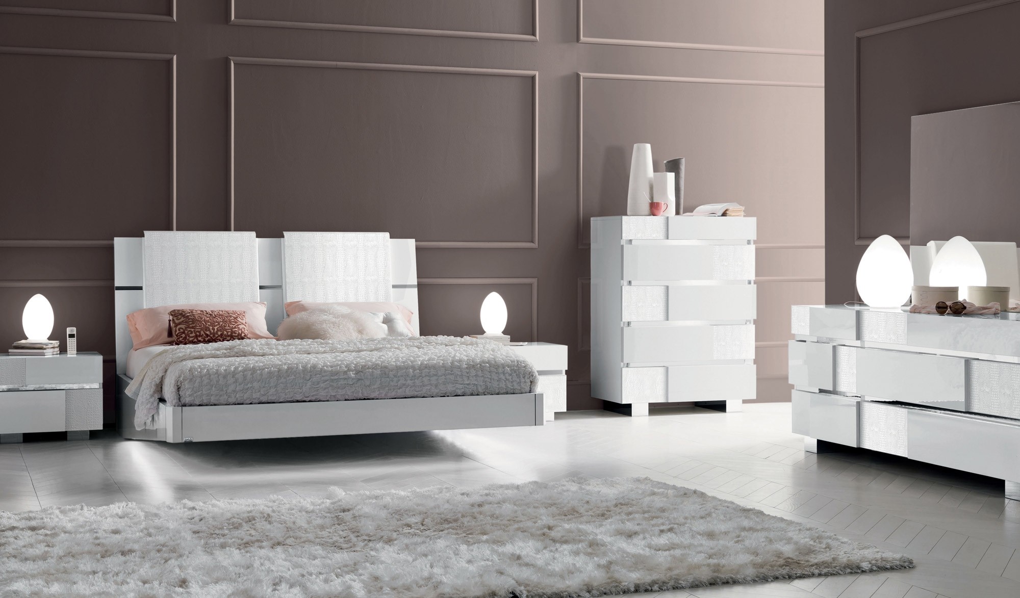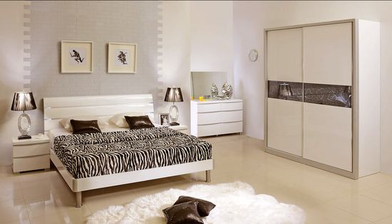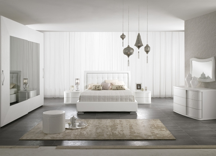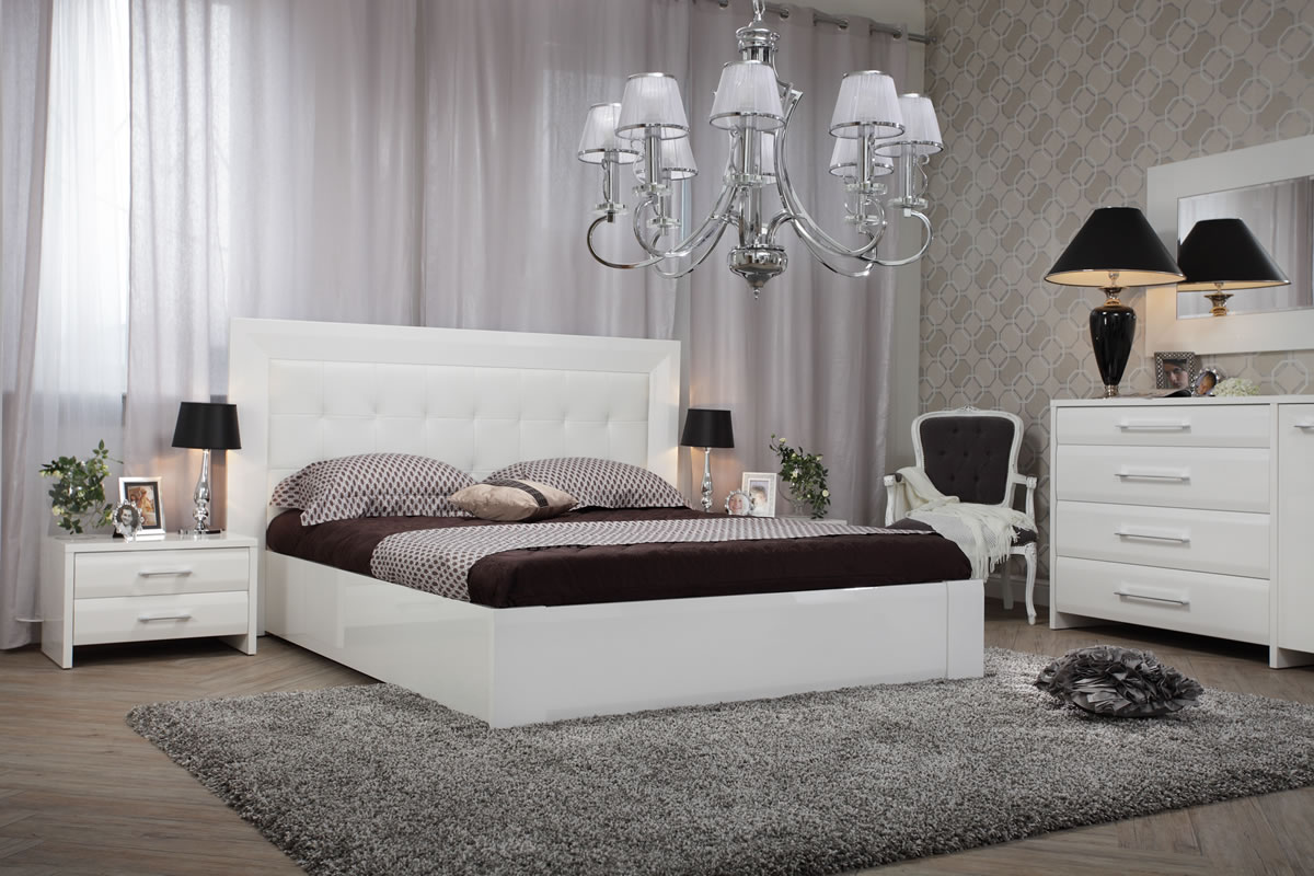 Un ensemble de chambre à coucher blanc aura fière allure dans une pièce de toute taille. L'abat-jour agrandit visuellement le meuble par rapport à sa taille réelle, élargissant ainsi l'espace. Les surfaces brillantes et les miroirs intégrés le font particulièrement bien.